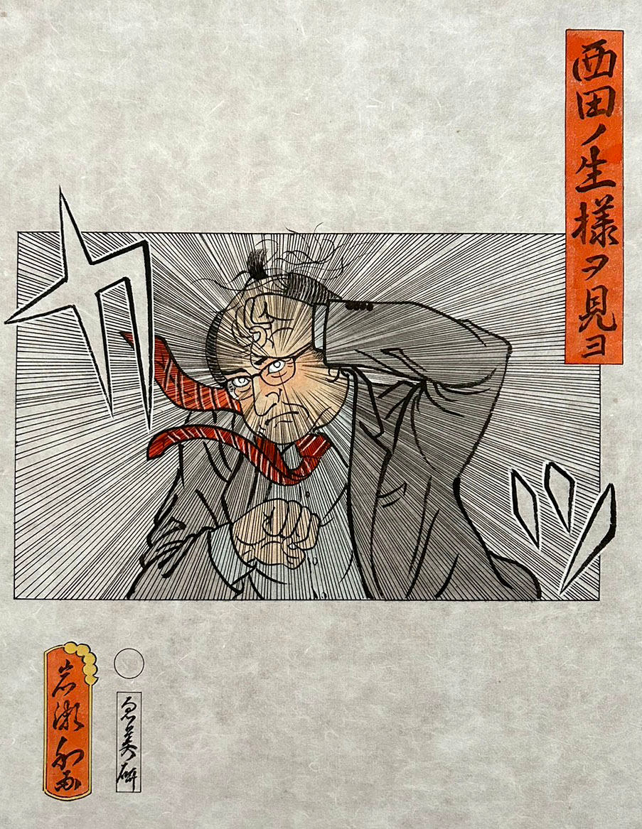 Suihi paint (dyed mud), Sumi ink on Mino-washi
