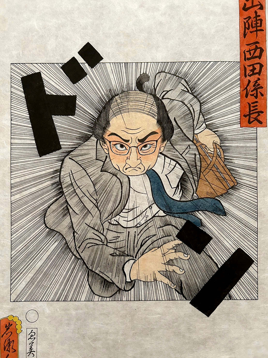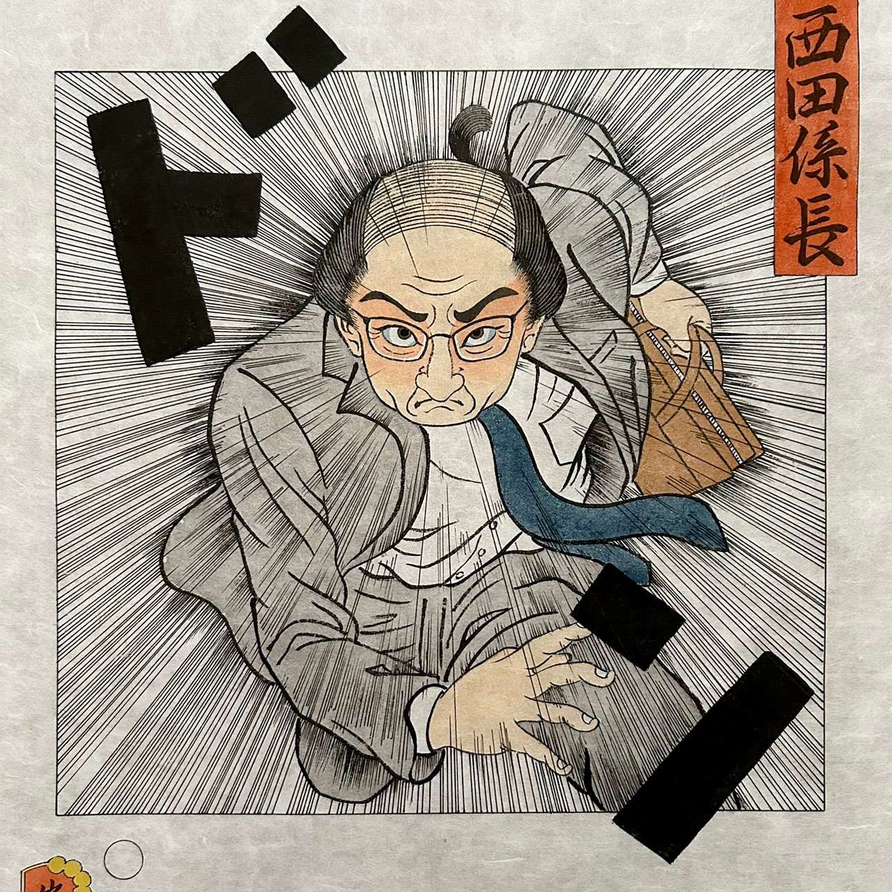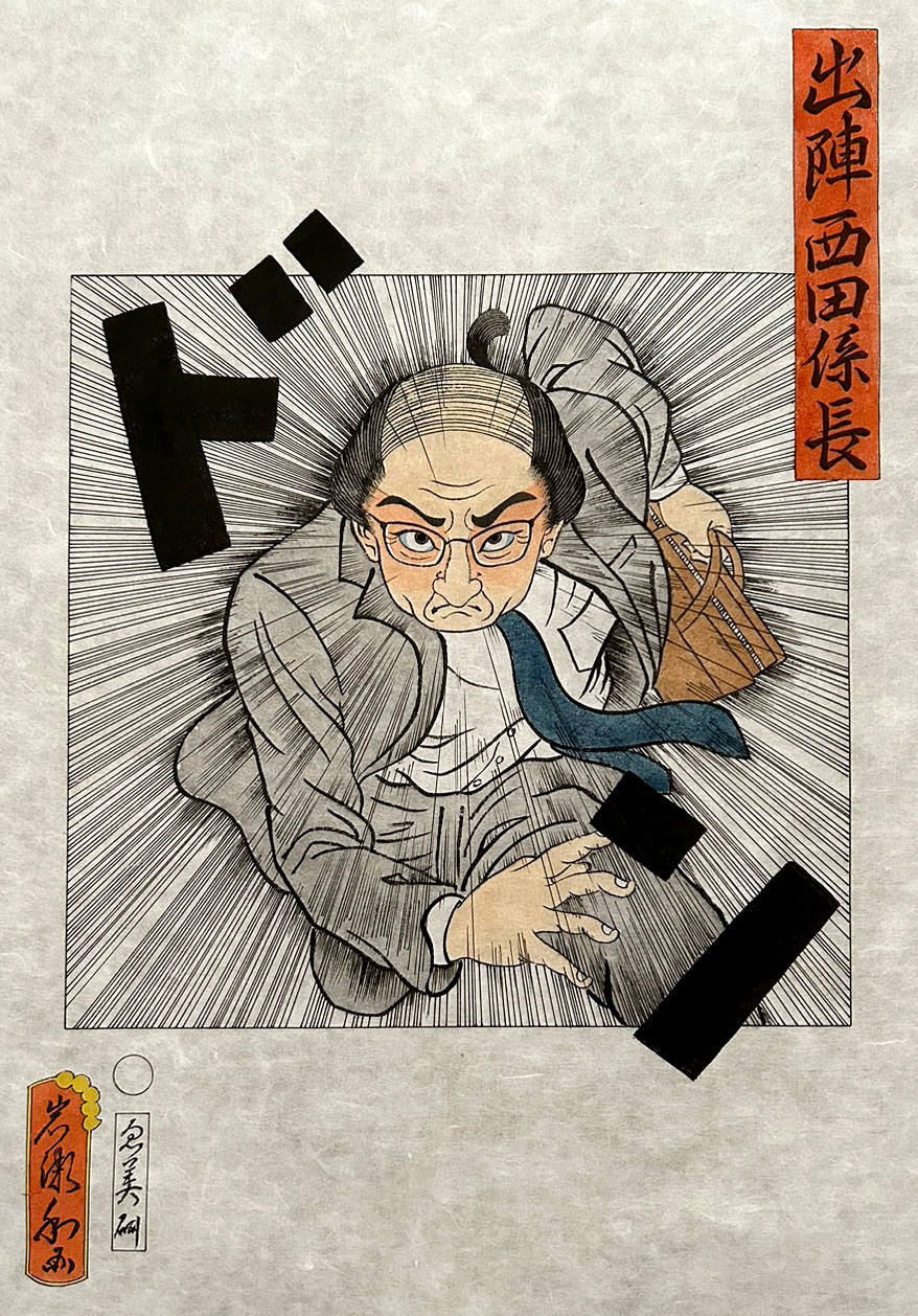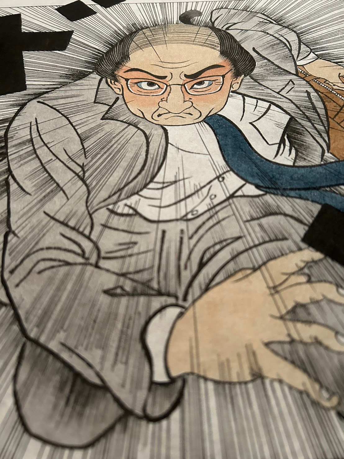 Suihi paint (dyed mud), Sumi ink on Mino-washi