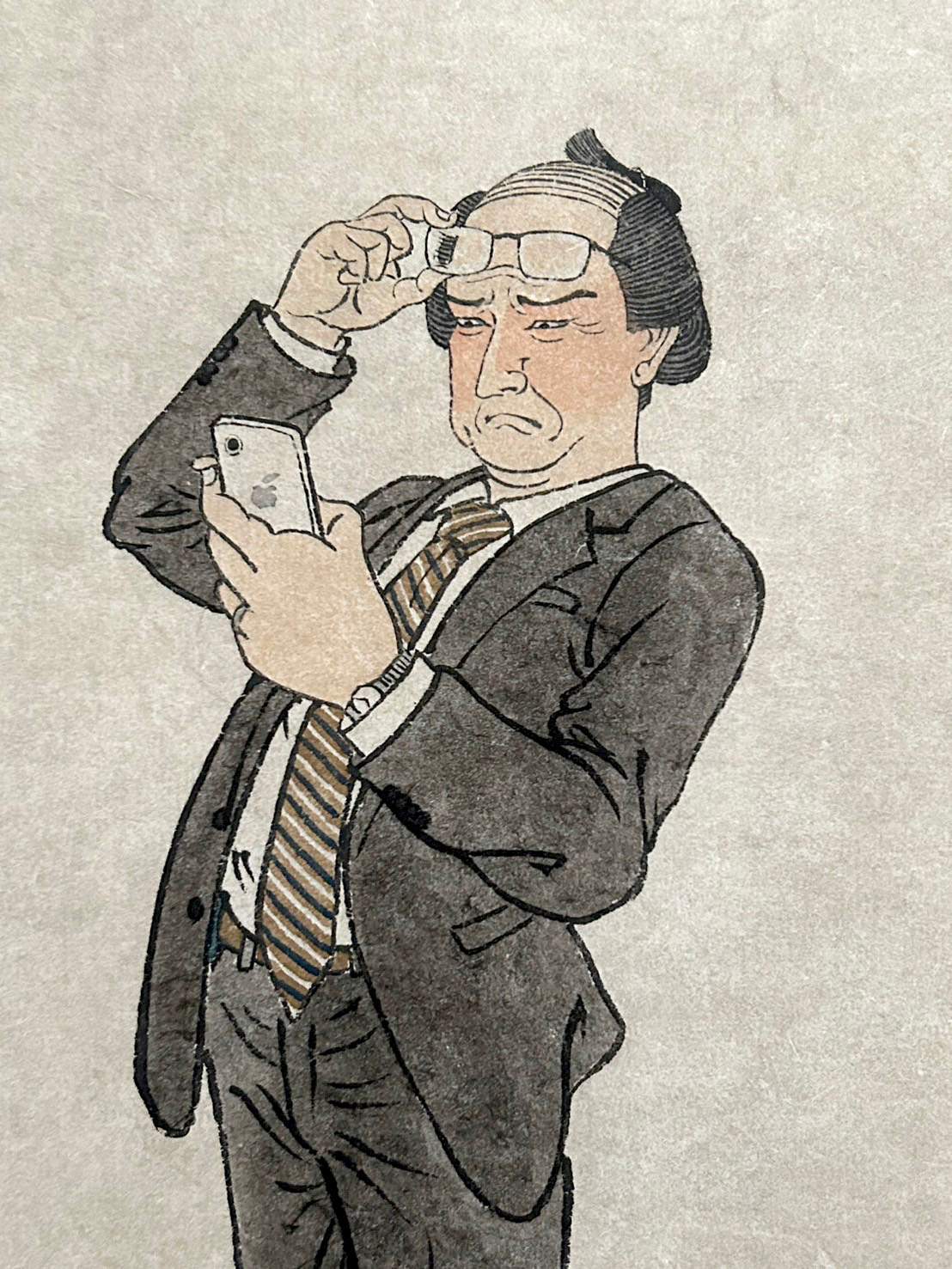 Suihi paint (dyed mud), Sumi ink on Mino-washi