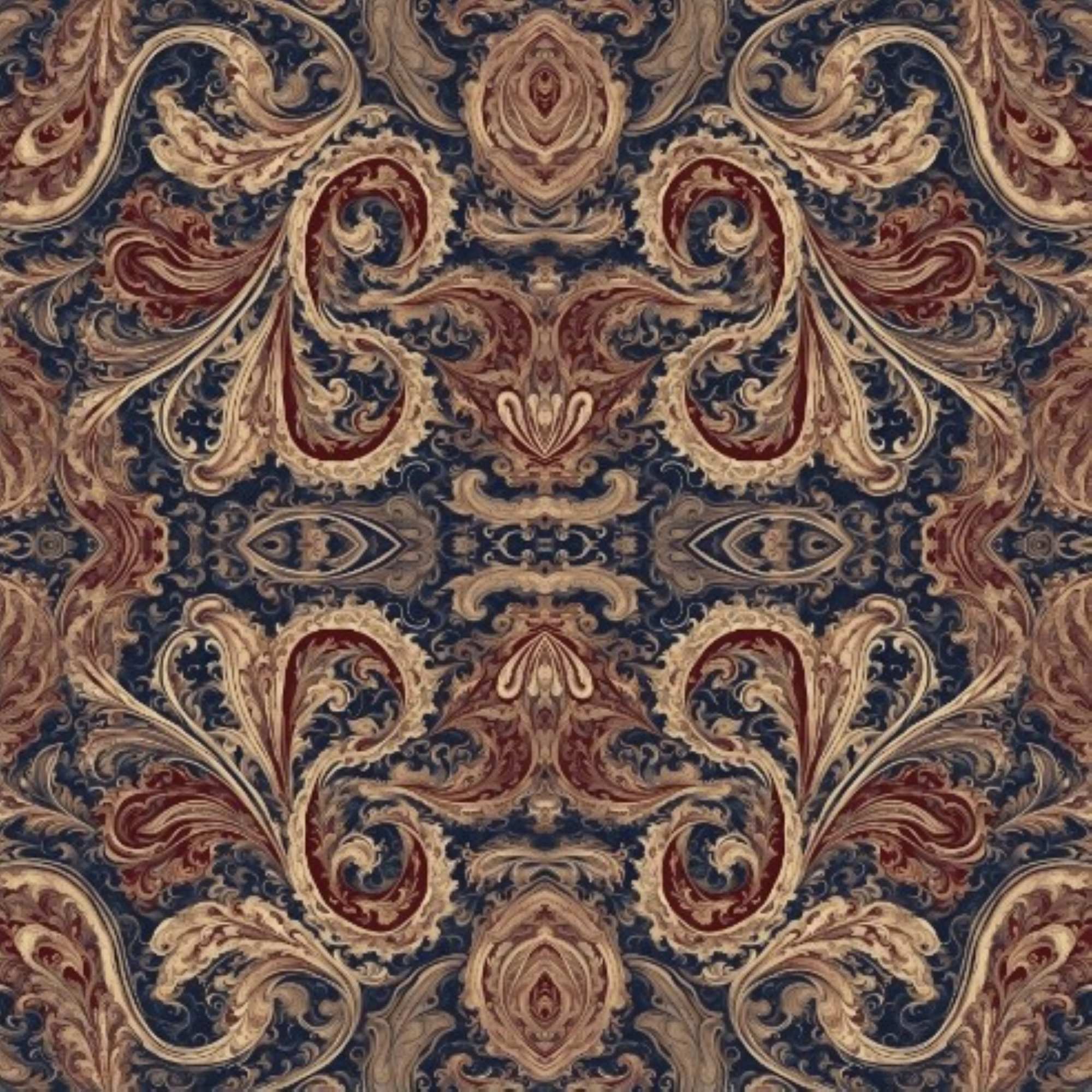 This vintage floral artwork presents a captivating pattern that evokes the elegance of baroque design. Each curve and swirl tells a story, inviting the viewer to explore the intricate details that dance across the canvas. The deep hues of navy and warm earth tones create a harmonious balance, reminiscent of life's vibrant experiences.