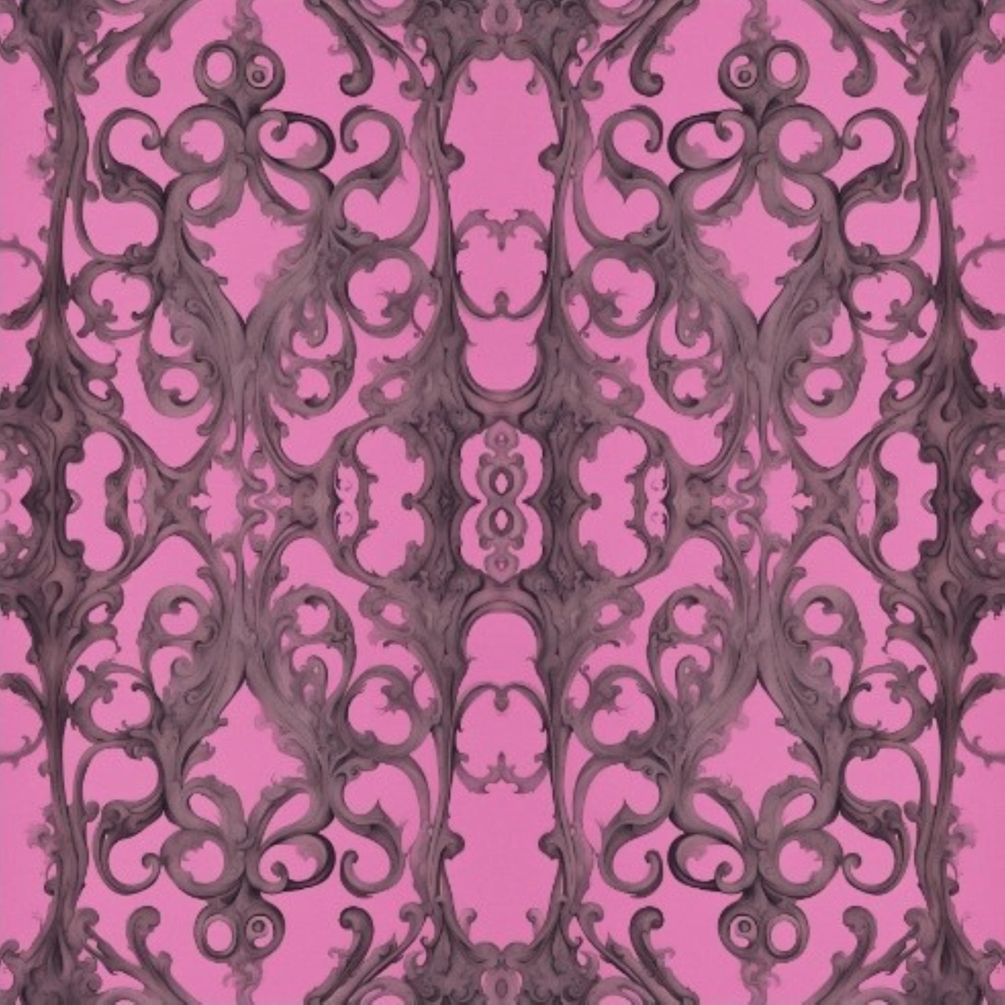 Floral elegance intertwines with ornate baroque patterns, creating a visual symphony that dances across a vibrant pink canvas. This artwork reveals a rich tapestry of intricate designs, each curve and flourish telling a story of beauty and complexity. The interplay of soft hues and bold shapes invites a sense of warmth and sophistication, making it a striking addition to any space.