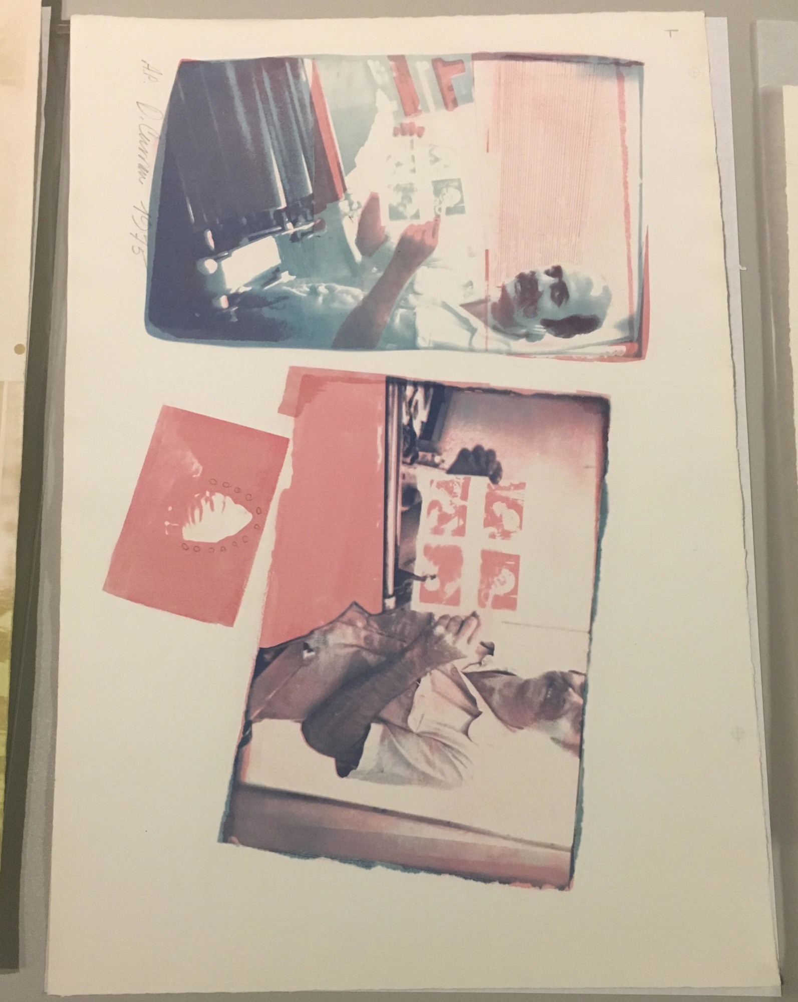 Item description: An alternative photograph process using gum printing. Two self portraits of Darryl Curran at printing press.
