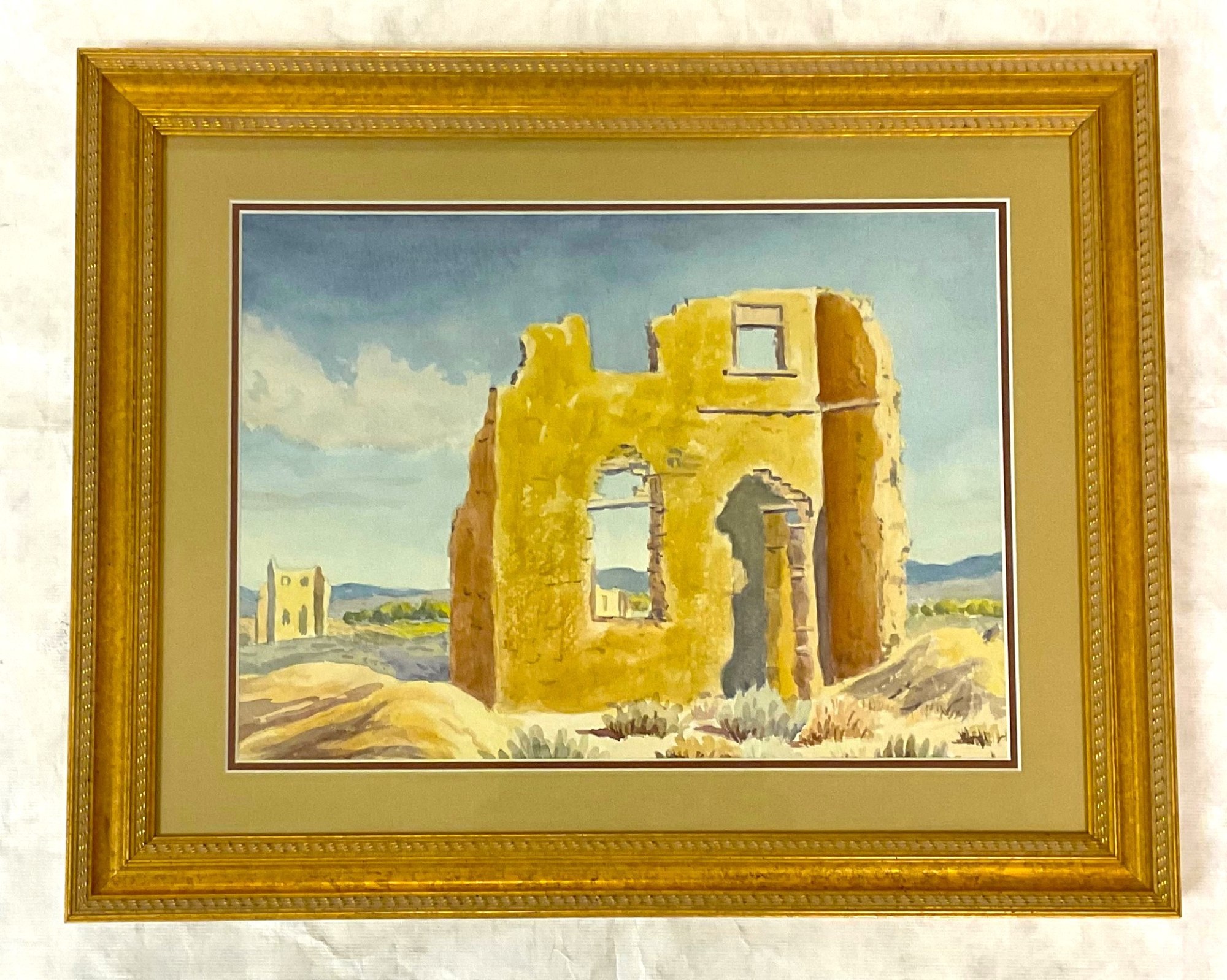 Item description: Landscape watercolor with the remains of an old building, the location is Fort Churchill in Silver Springs, Nevada.