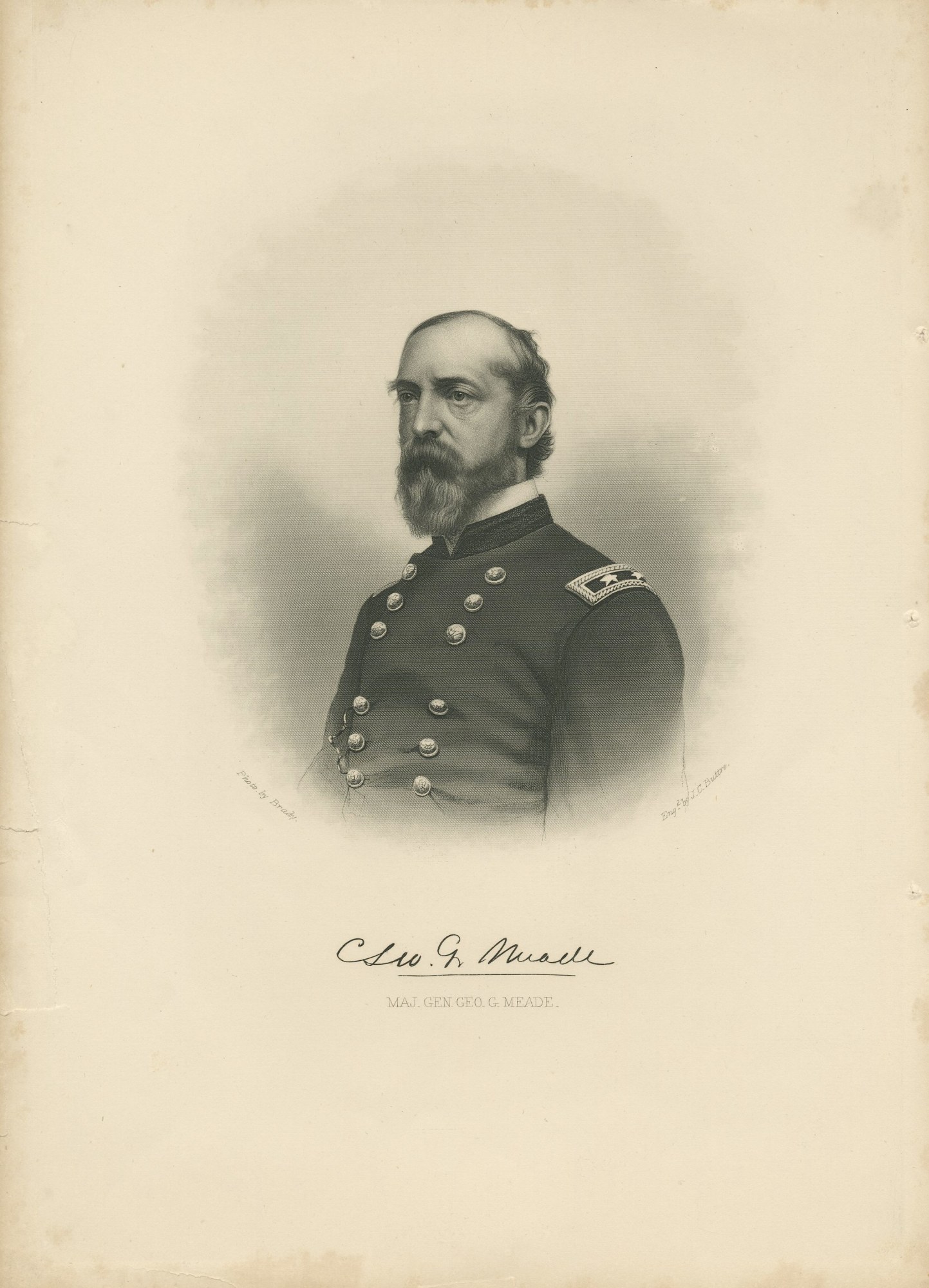 Right-facing, bust length print of Major General George G. Meade.