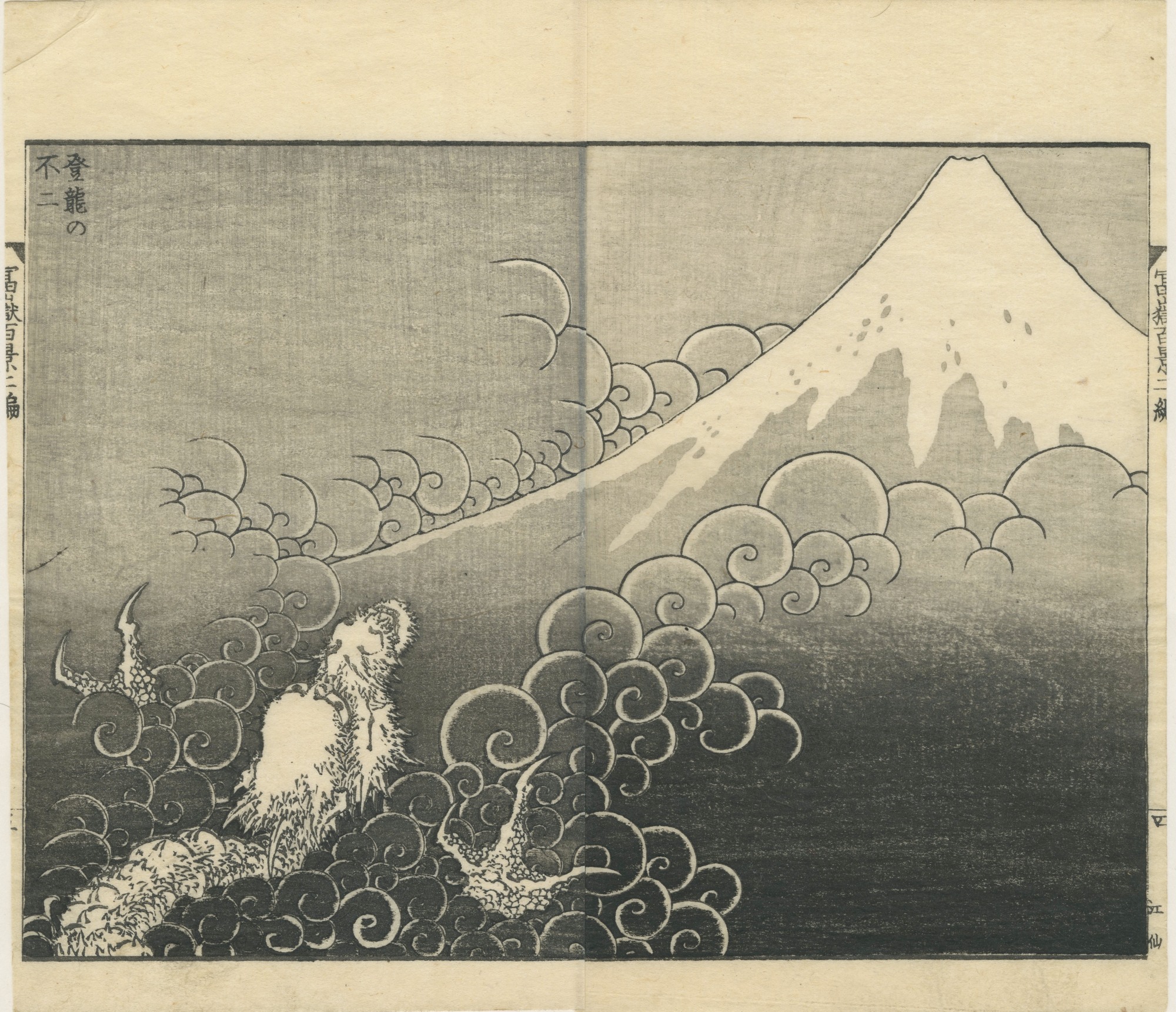 Dragon Ascending Mount Fuji, from the album One Hundred Views of Mount Fuji (Fugaku hyakkei, nihen 富嶽百景二編) : [volume 2].