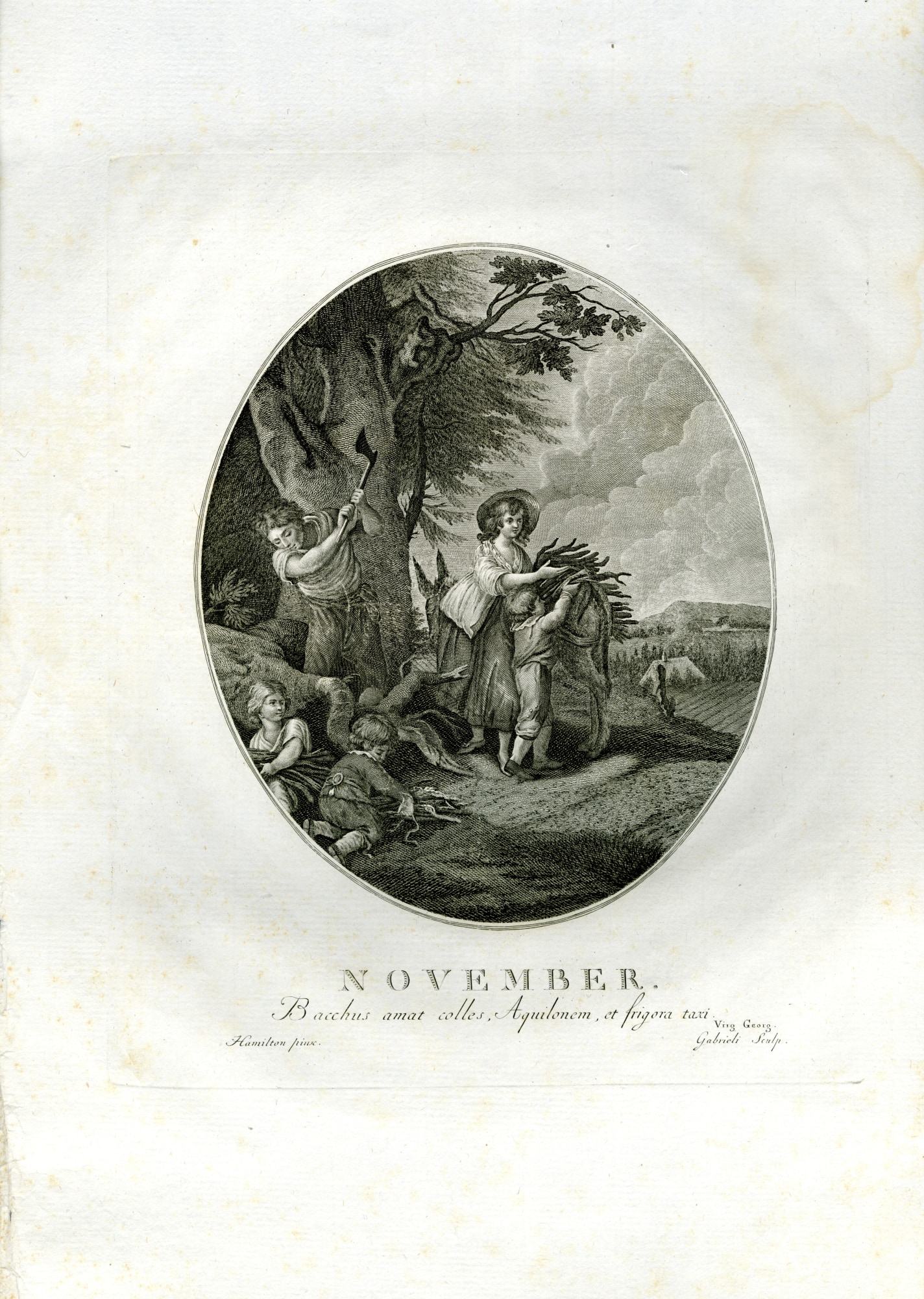 Item description: Outdoor scene of figures gathering wood - November.