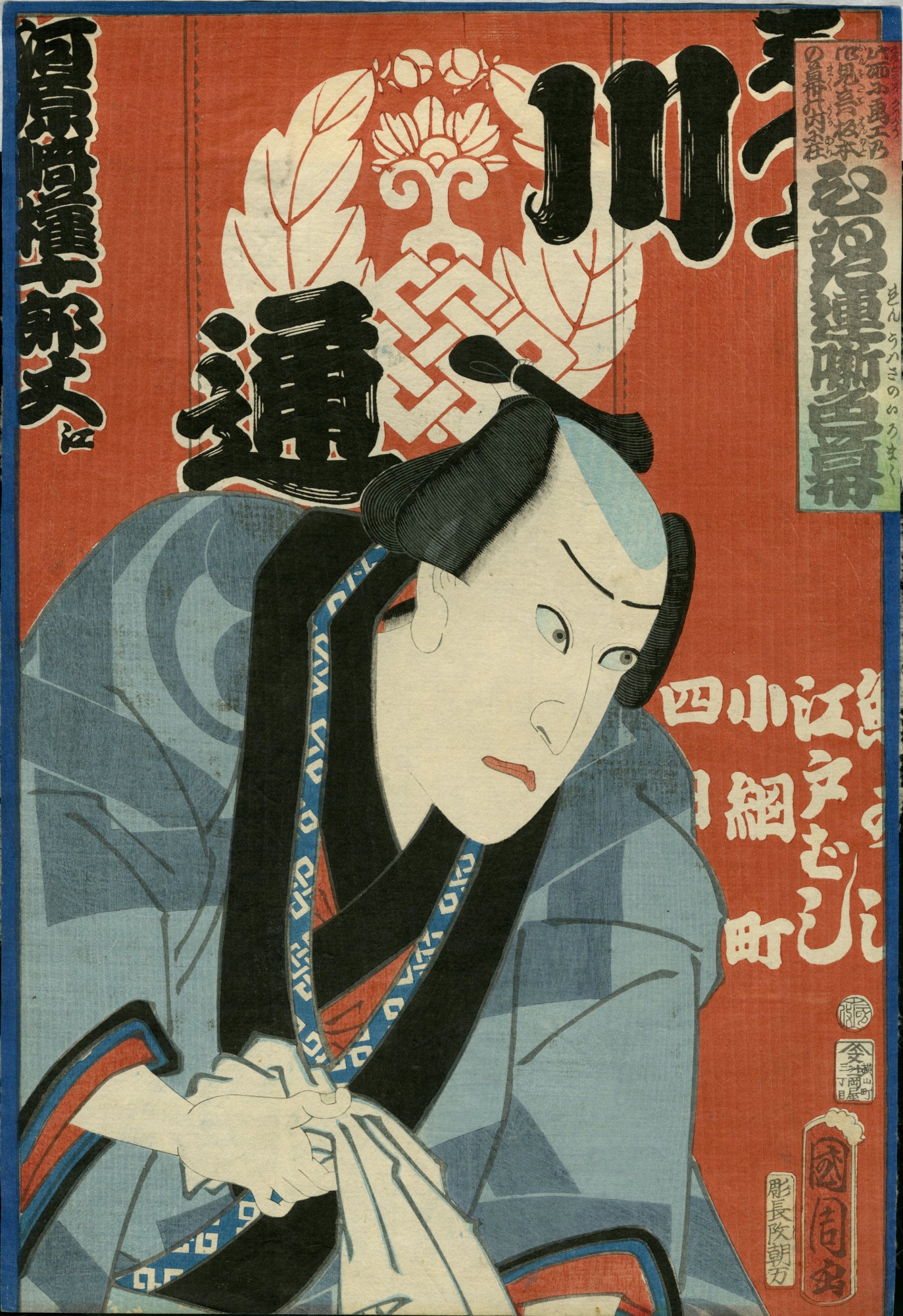 - Portrait of the Actor Kawarazaki Gonjuro and Curtain, 1864