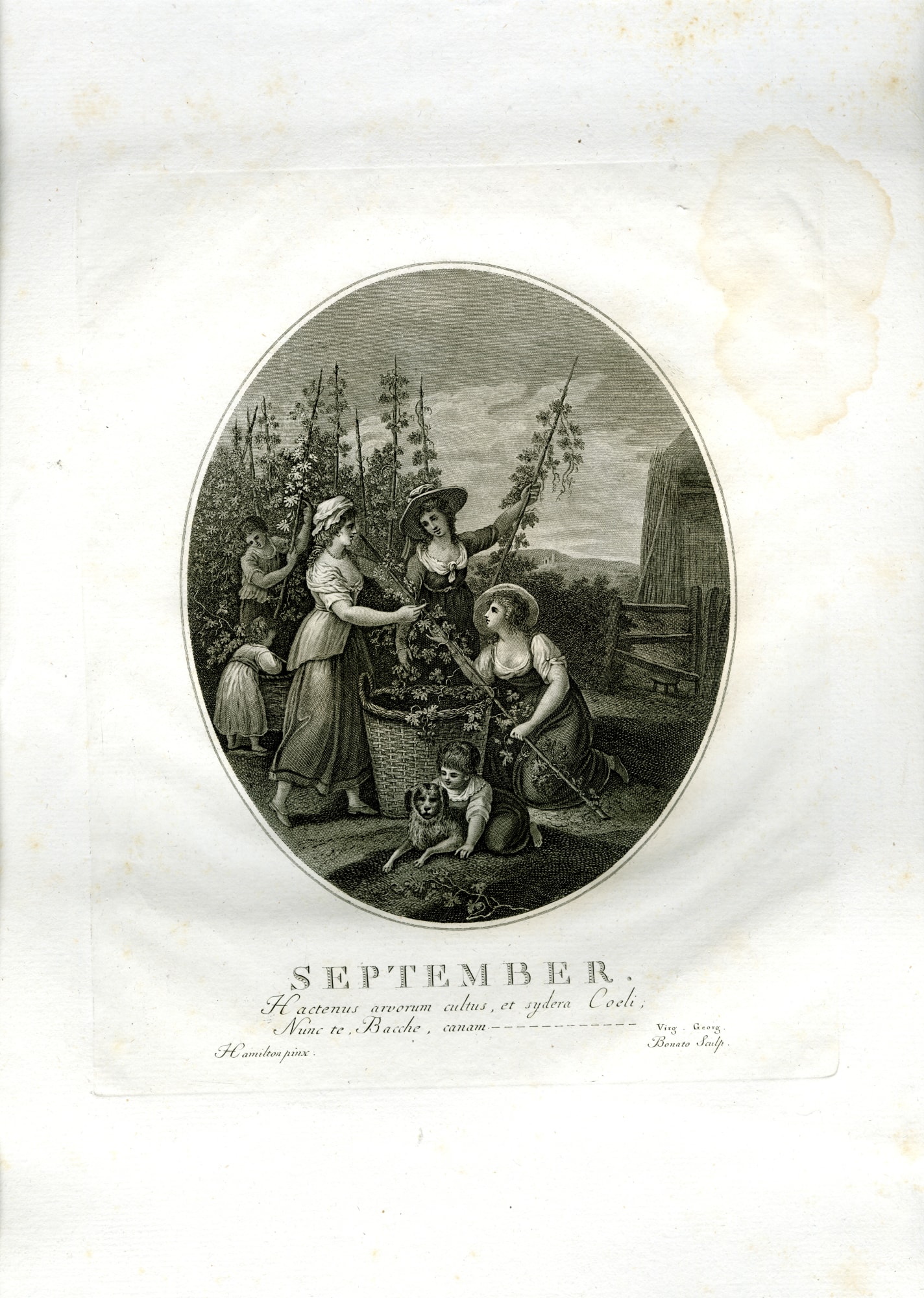 Item description: Outdoor scene of figures and fauna - September.
