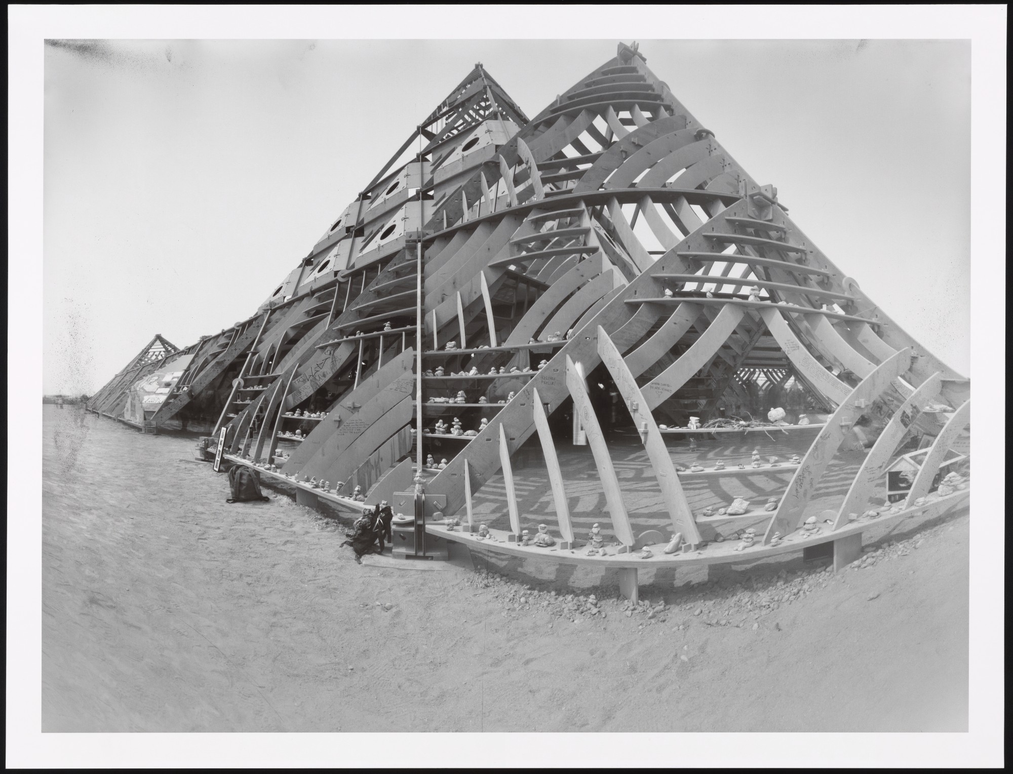 Item description: Digital archival print made from the original paper negative. A triangle structure in the Black Rock Desert.