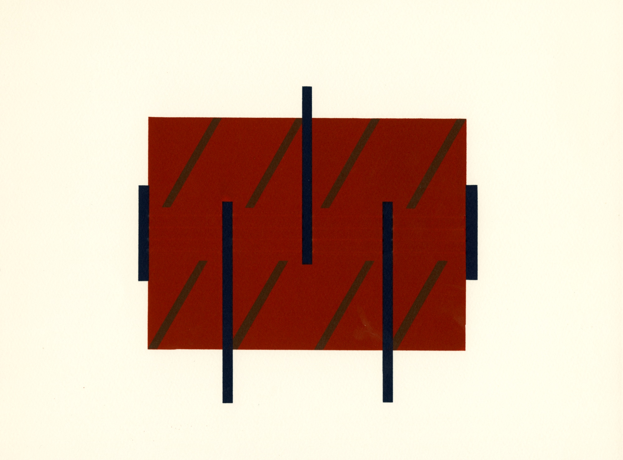 Item description: Modern abstraction consisting of a red rectangle with black stripes.