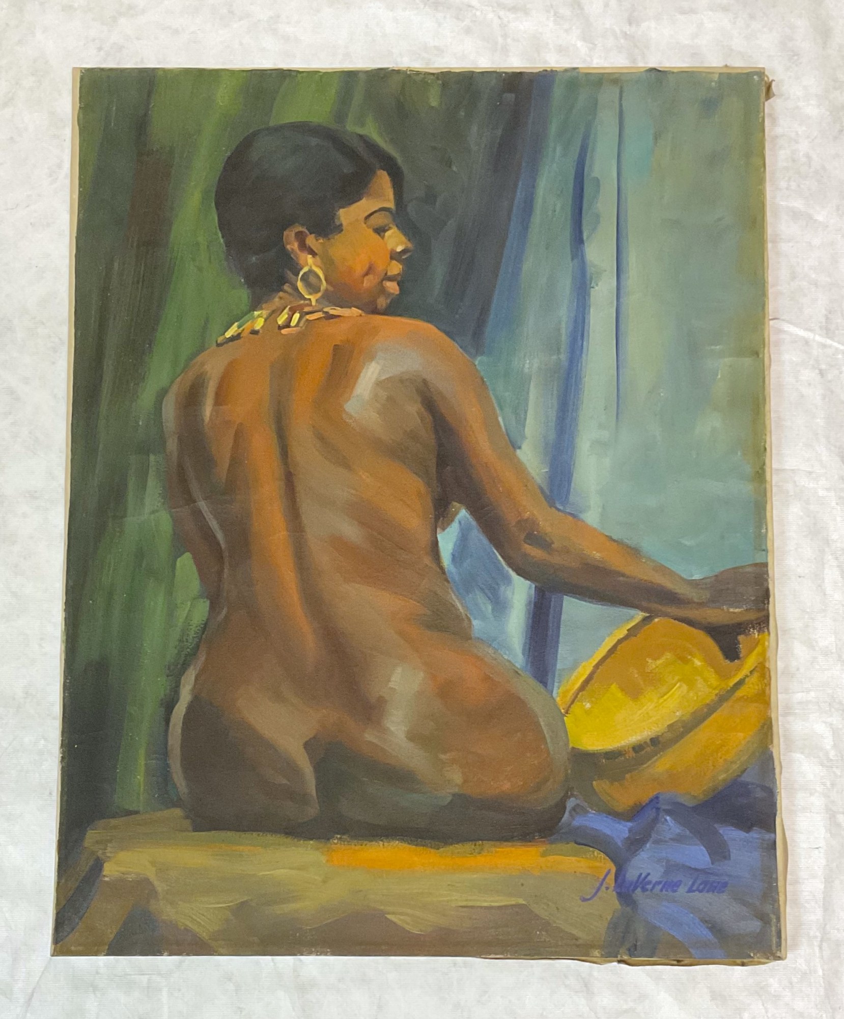 Item description: Portrait painting of a nude profile and back.