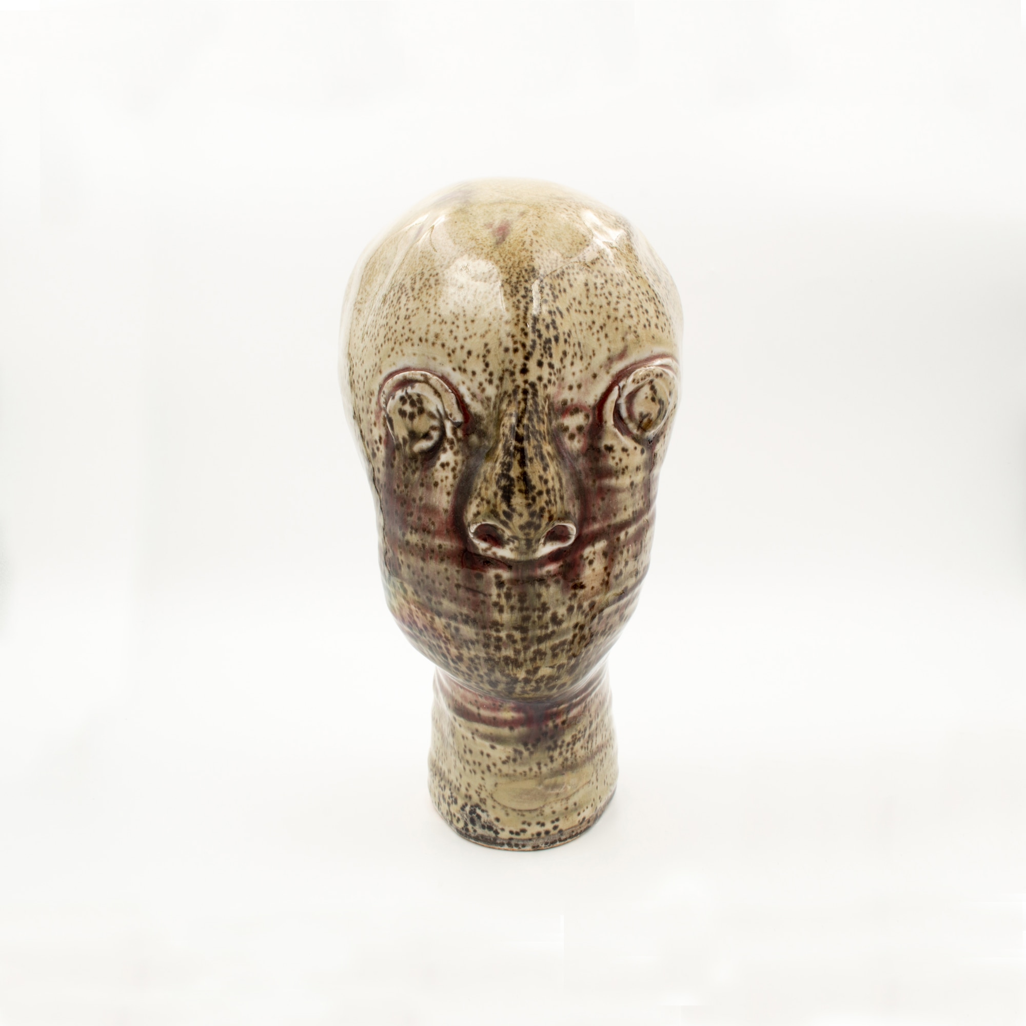 Mary Bowron is a ceramic artist from Boyds, Maryland. Her body of work, primarily heads, is part of the Silent Witness Series that Bowron produced over many years. Each piece is approximately 10 inches tall and they were created by a variety of clays and glazes. Having grown up in the south during a time of racial tension and unease, the heads reflect Mary’s passion for human rights and equality. In speaking of the heads, Mary has said, “all have no mouth for fear of speaking what they say and hear. This fear is a plague on us all.” She also refers to the heads as a “crowd of silence and fear.”