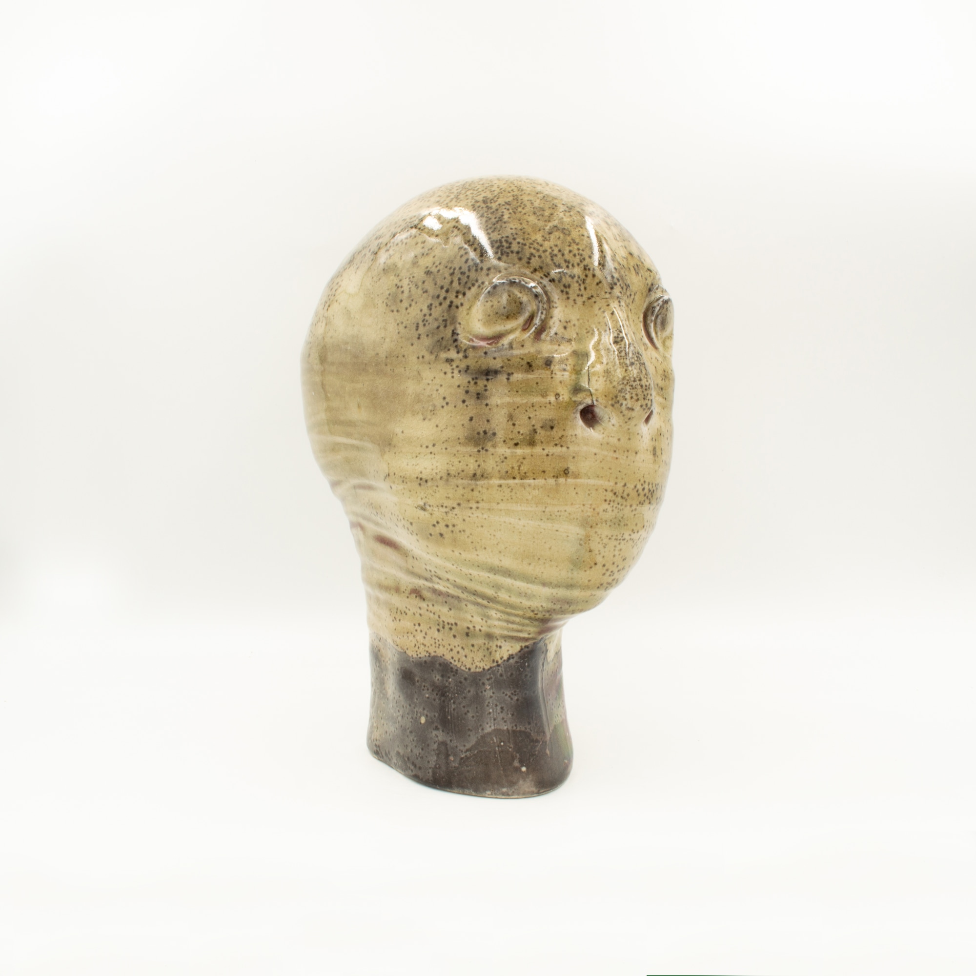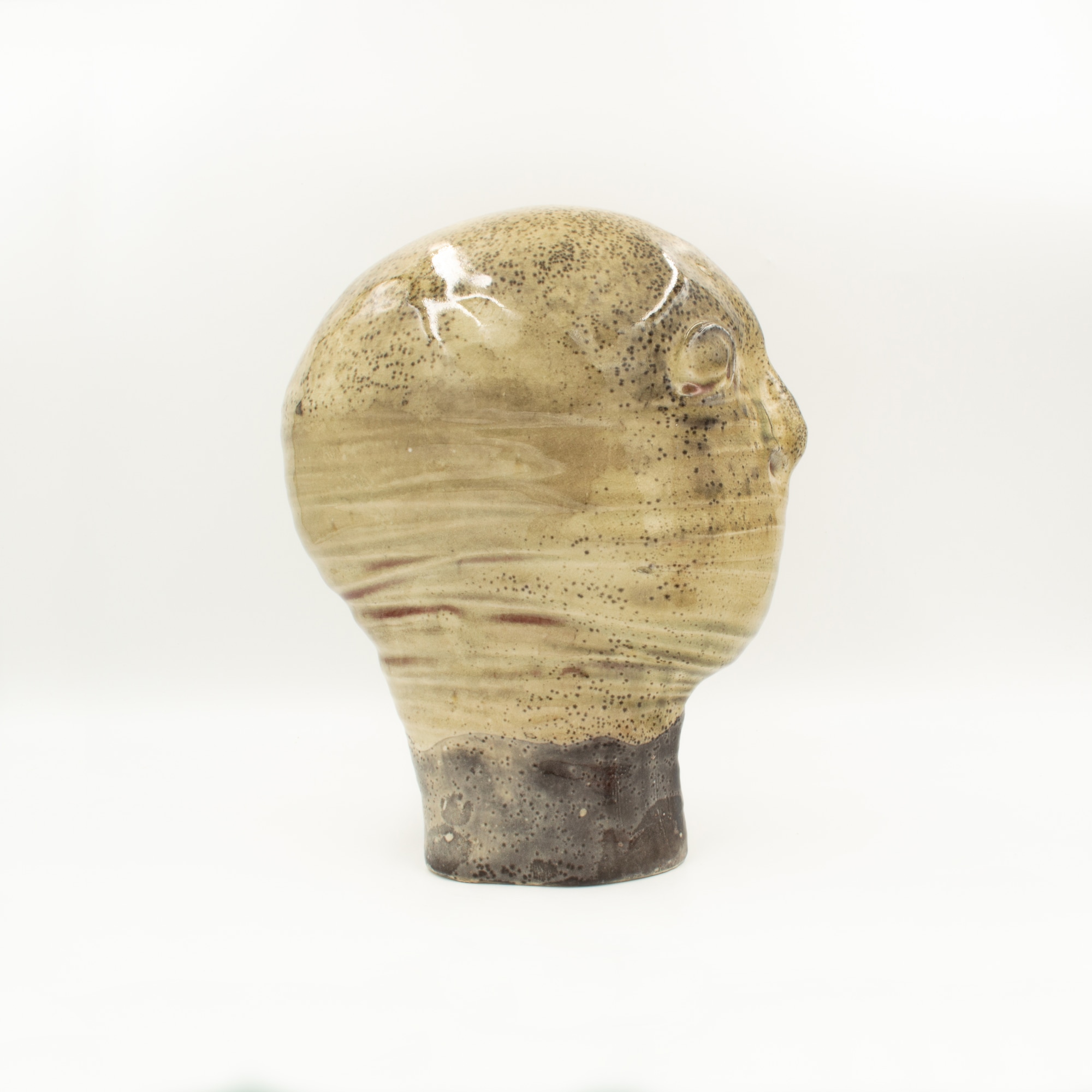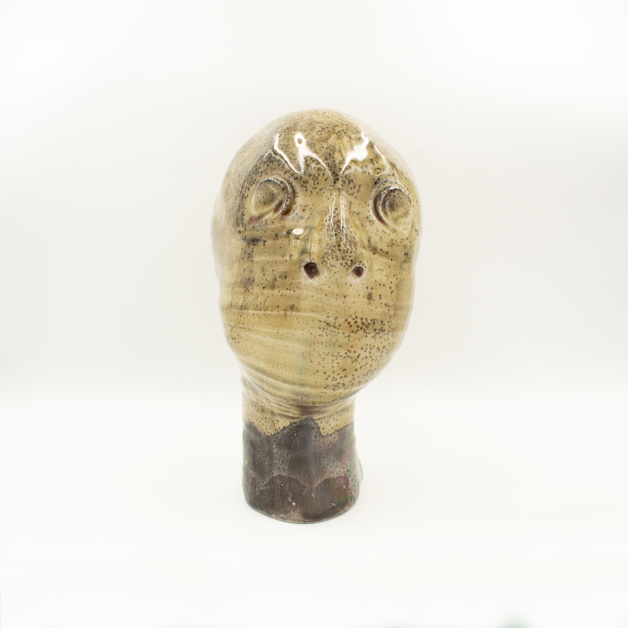 Mary Bowron is a ceramic artist from Boyds, Maryland. Her body of work, primarily heads, is part of the Silent Witness Series that Bowron produced over many years. Each piece is approximately 10 inches tall and they were created by a variety of clays and glazes. Having grown up in the south during a time of racial tension and unease, the heads reflect Mary’s passion for human rights and equality. In speaking of the heads, Mary has said, “all have no mouth for fear of speaking what they say and hear. This fear is a plague on us all.” She also refers to the heads as a “crowd of silence and fear.”