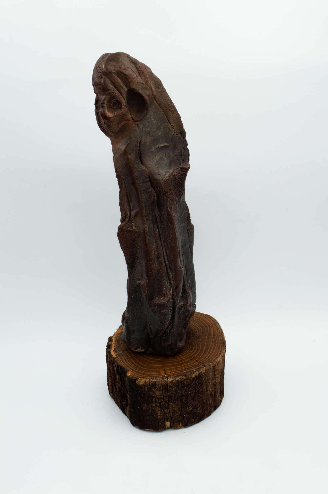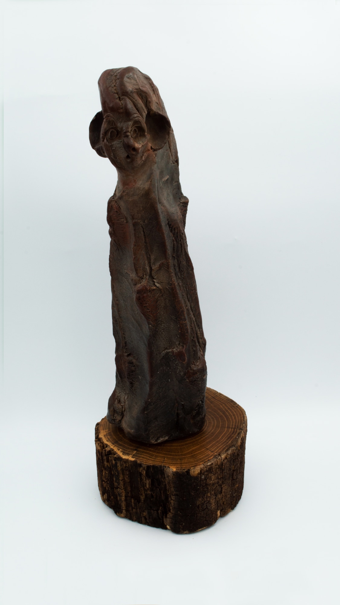 Item description: Waxed wood fired ceramic figure on a wooden base.
