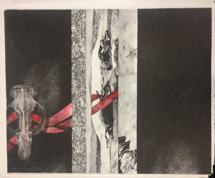 All of the Range Finder Suite images on one poster in black and white. Mechanical instruments with grids behind them and some flowing shapes.