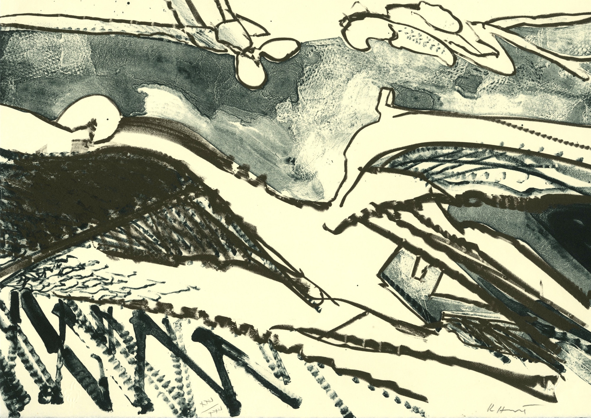Item description: Abstraction in black and white. Line and negative space.