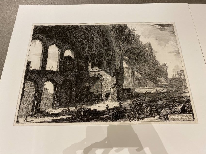 Item description: Veduta degli avanzi del Tablino della Casa aurea di Nerone detti volgarmente il Tempio della Pace (Ruins of the Neronian dining room, Tempio della Pace), from Vedute di Roma (Views of Rome).