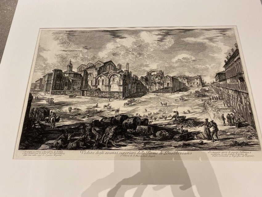 Item description: Veduta degli avanzi superiori della Terme di Diocleziano (View of the remains of the baths of Diocletian), from Vedute di Roma (Views of Rome).