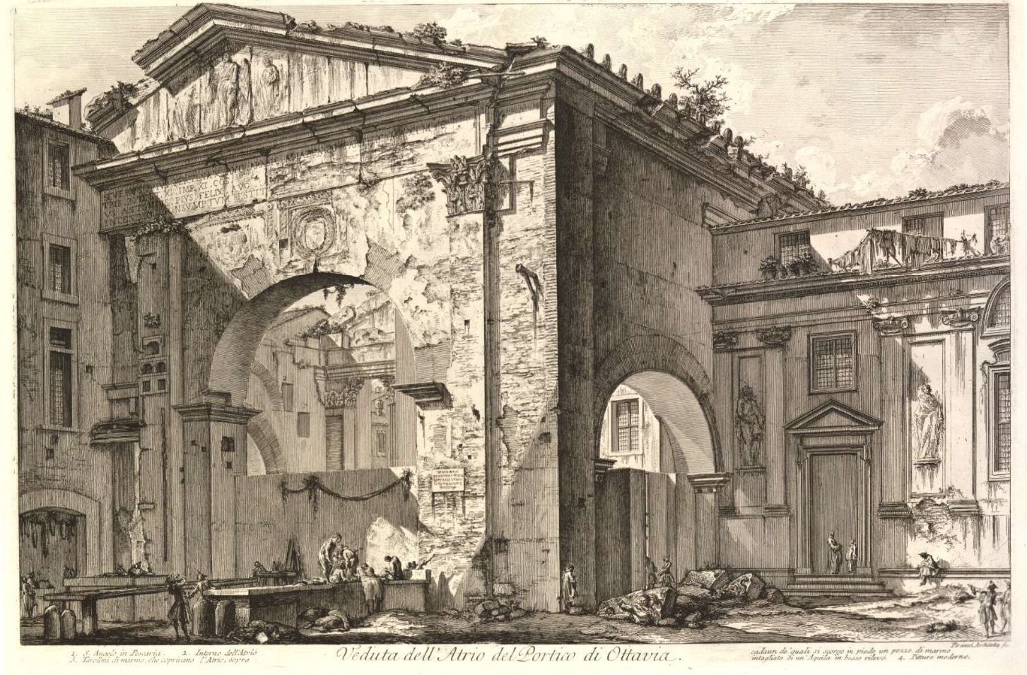 Item description: Veduta dell'Atrio del Portico di Ottavia (View of the atrium of the portico of Octavia), from Vedute di Roma (Views of Rome).