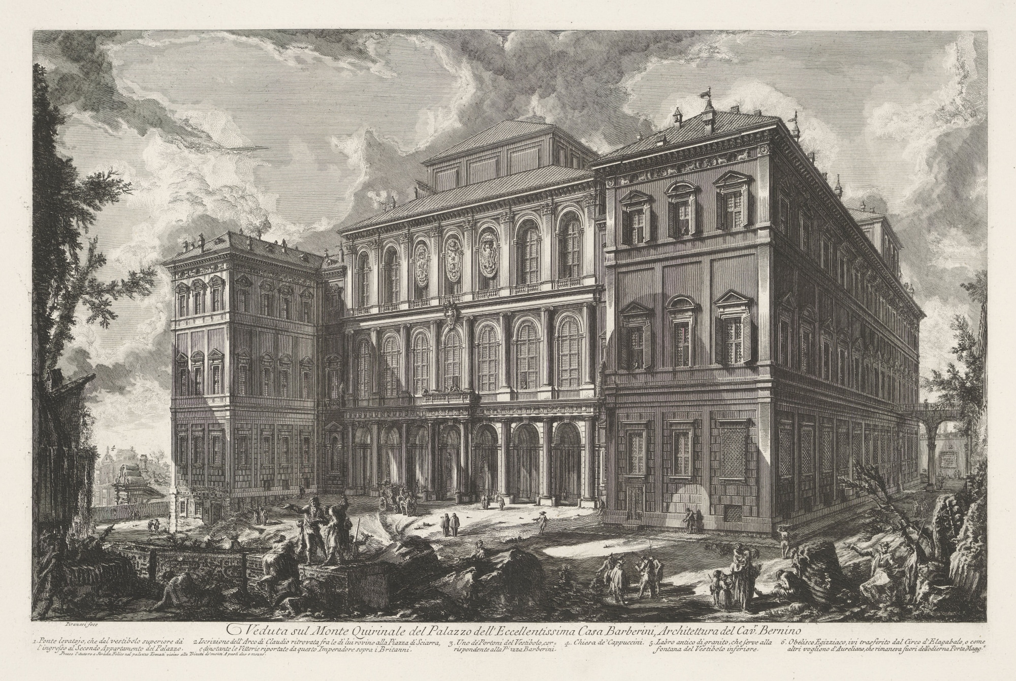 Item description: Veduta Sul Monte Quirinale del Palazzo dell'Eccellentissima Casa Barberini (View of the Palazzo Barberini on the Quirinal), from Vedute di Roma (Views of Rome).