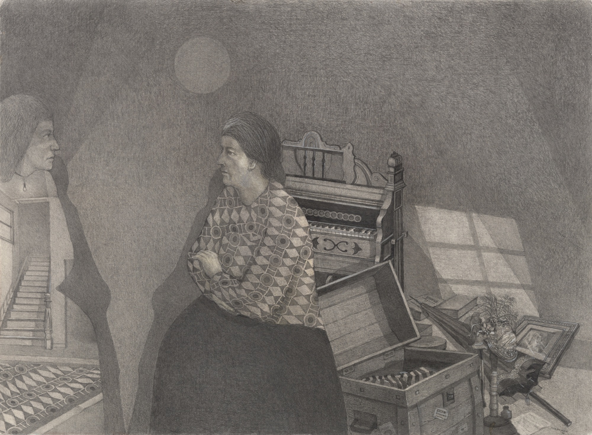Item description: WOMEN SERIES In 1975, Jim McCormick left Silver City, the result of the breakup of his marriage. In response to this deeply destressing turn in his life, he initiated a series of charcoal pencil and colored pencil drawings based on the theme of “Women.” It was his attempt, along with writing poetry on the same theme, to confront the matter of gender as he graphically explored the possibilities for creative companionship with women—even in the aftermath of alienation and severance.