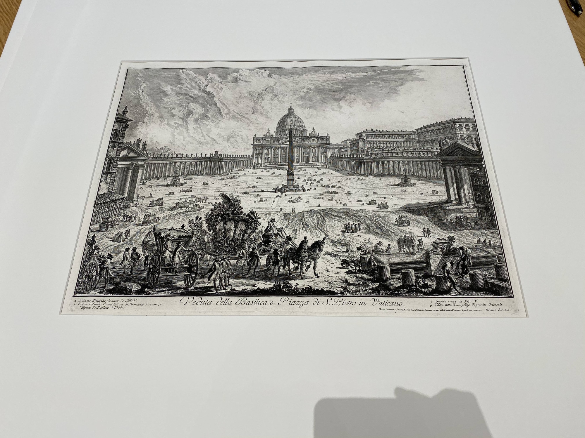 Item description: Veduta della Basilica, e Piazza di S. Pietro in Vaticano (St. Peter's and the piazza of St. Peter's), from Vedute di Roma (Views of Rome).