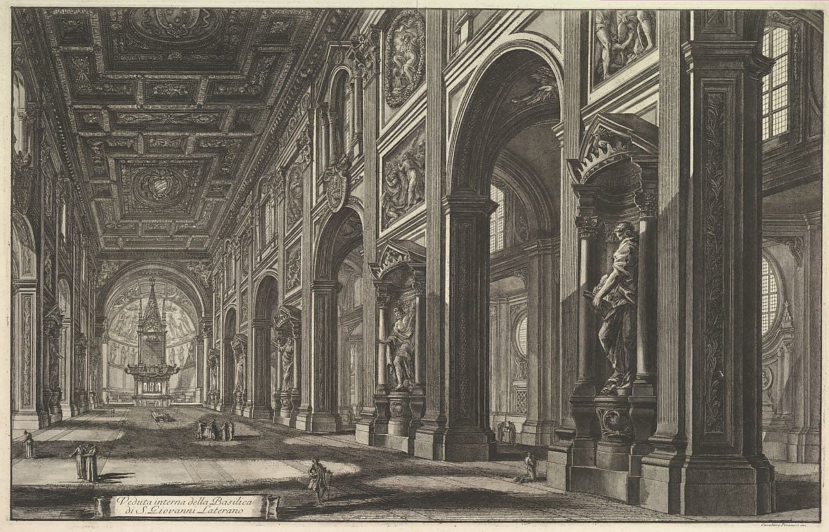 Item description: Veduta interna della Basilica di. S. Giovanni Laterano (Interior view of the basilica of St. John Lateran), from Vedute di Roma (Views of Rome).
