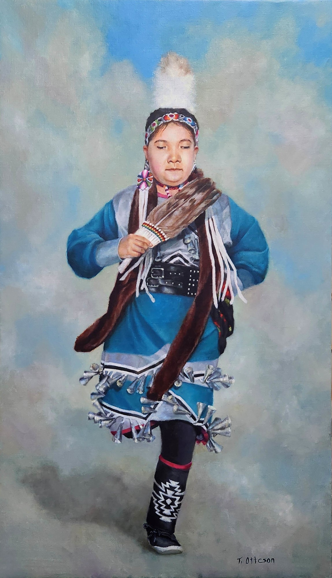 Navajo woman doing a Healing Dance in a Jingle Dress.