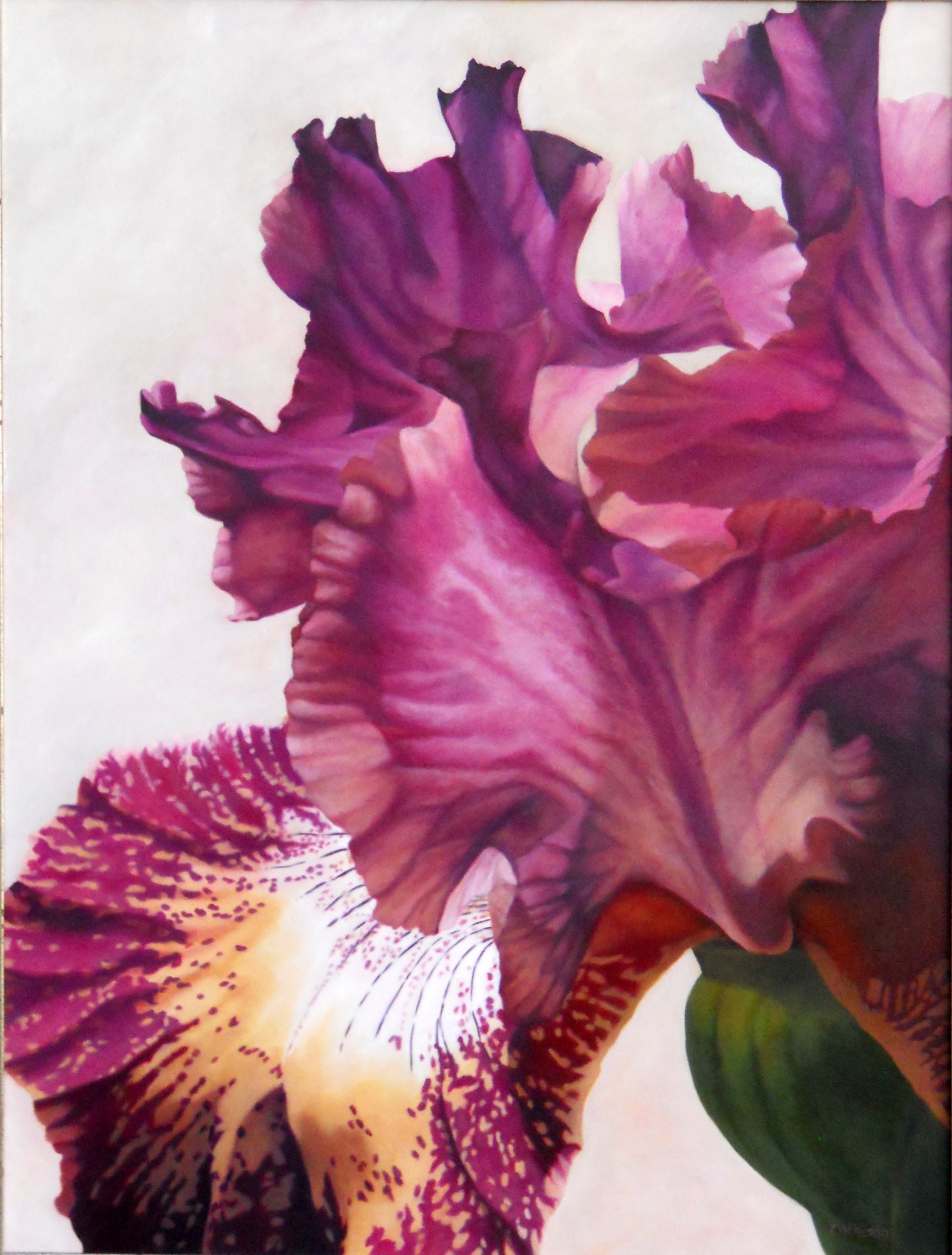 Close-up of a Purple Iris, from my garden, against a cream background.