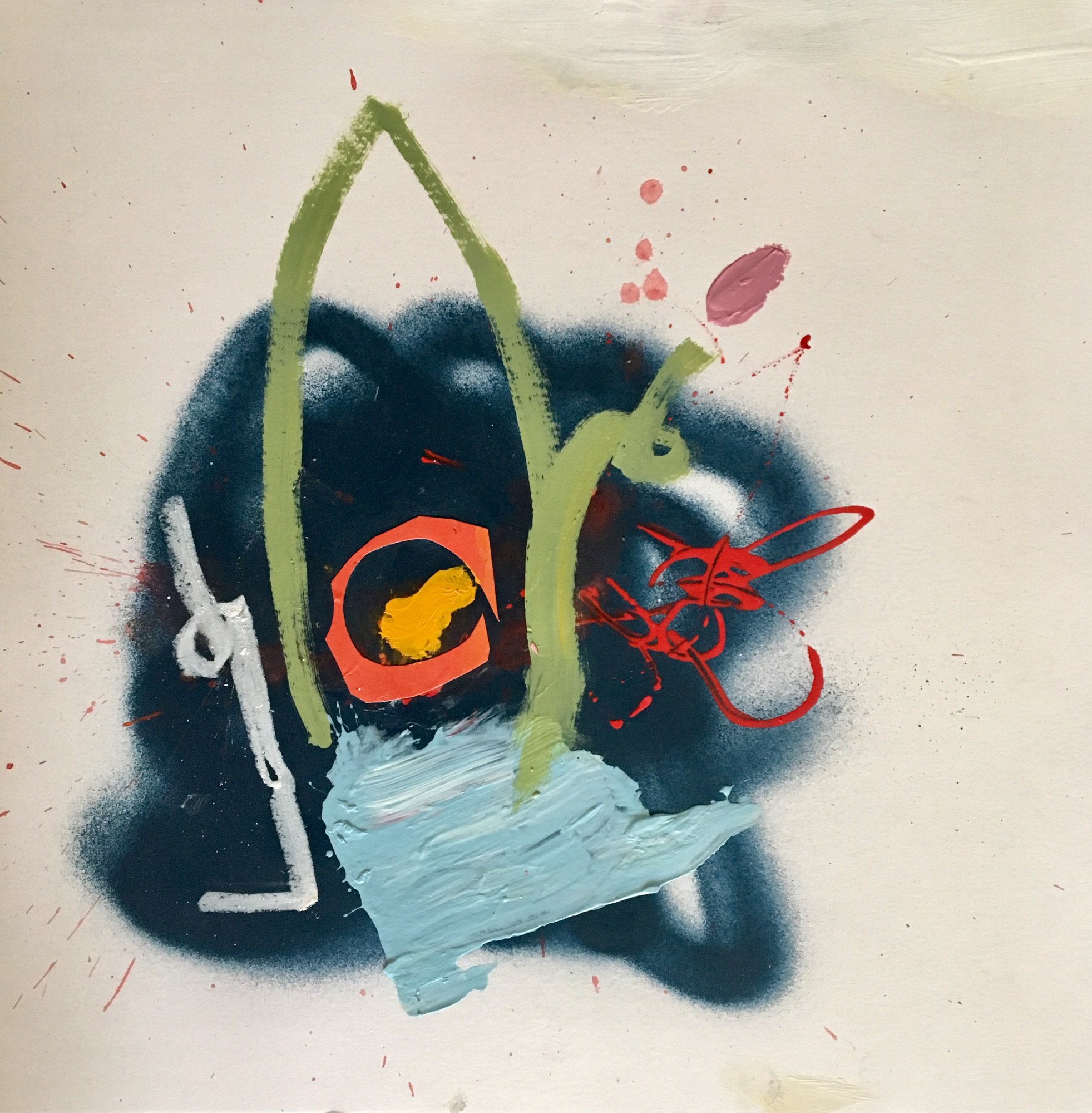 Mixed media on paper sandwiched in acrylic and framed with natural wood. Frame is 20x20 and art is 12x12.