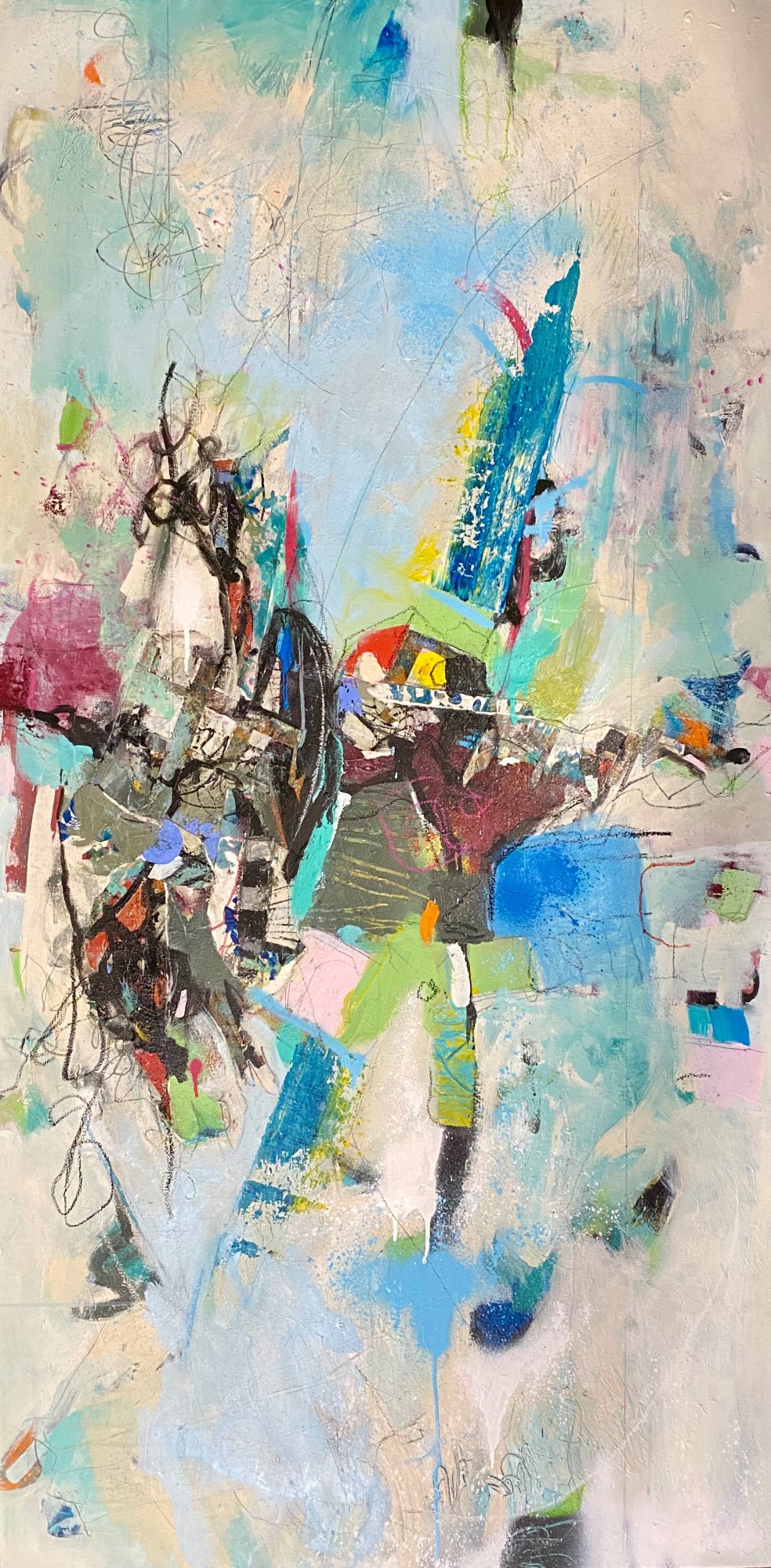 Acrylic, oil stick, ink, pencil, spray paint and collage