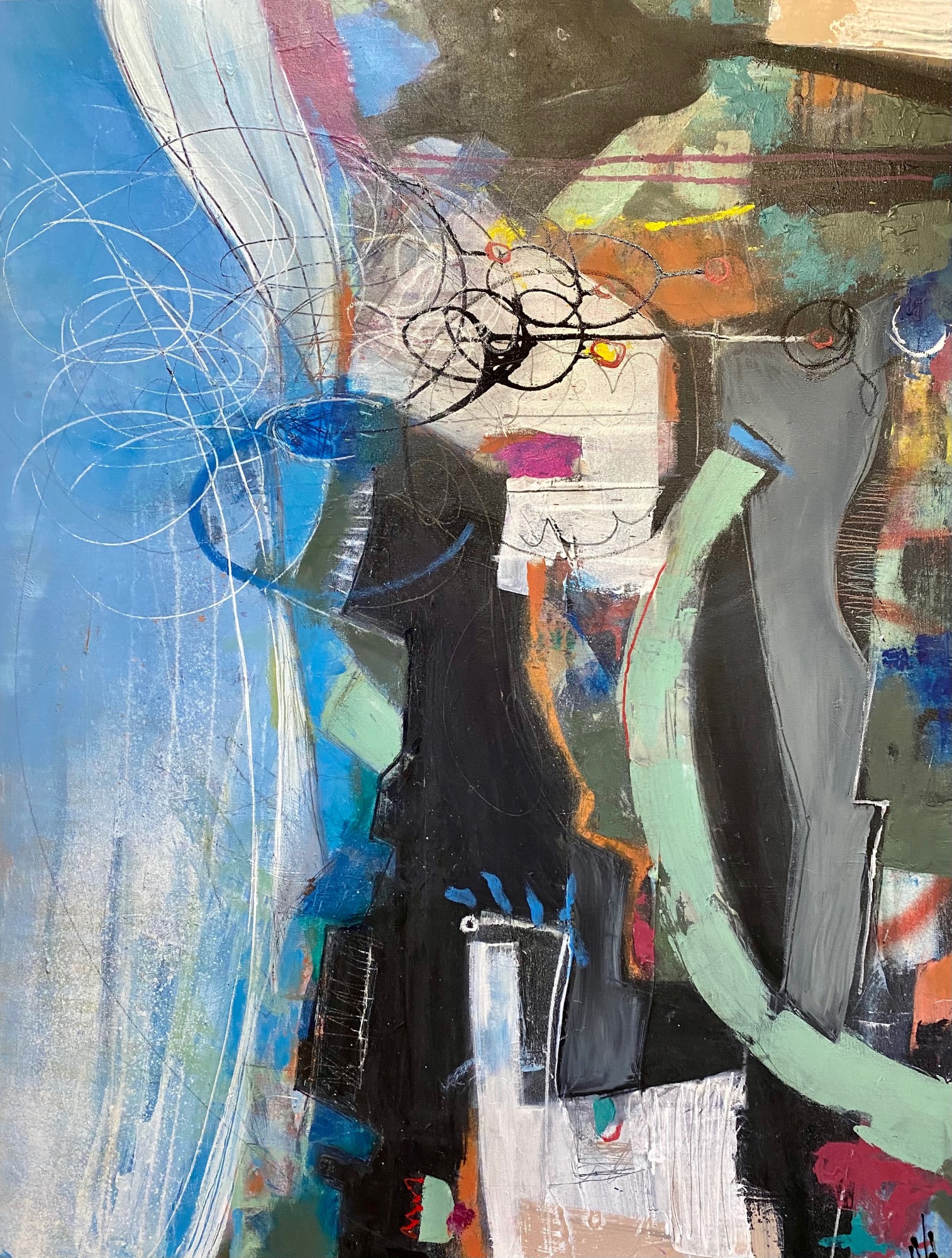 Anticipation, pent up energy, seeing where it all falls out. Intuitively and gestural marks with acrylic, spray paint, ink and pencil on a stretched canvas, ready to hang.