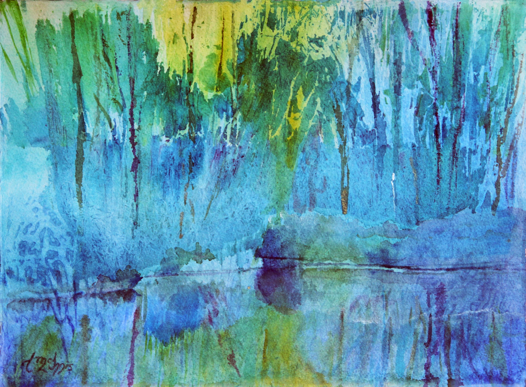 Restful and peaceful colors both cool and inspire in this abstract bayou scene. Be drawn in and rest in turquoise and quiet. This piece has a deckled edge to allow it to be mounted and floated in the frame to further your experience of floating away.