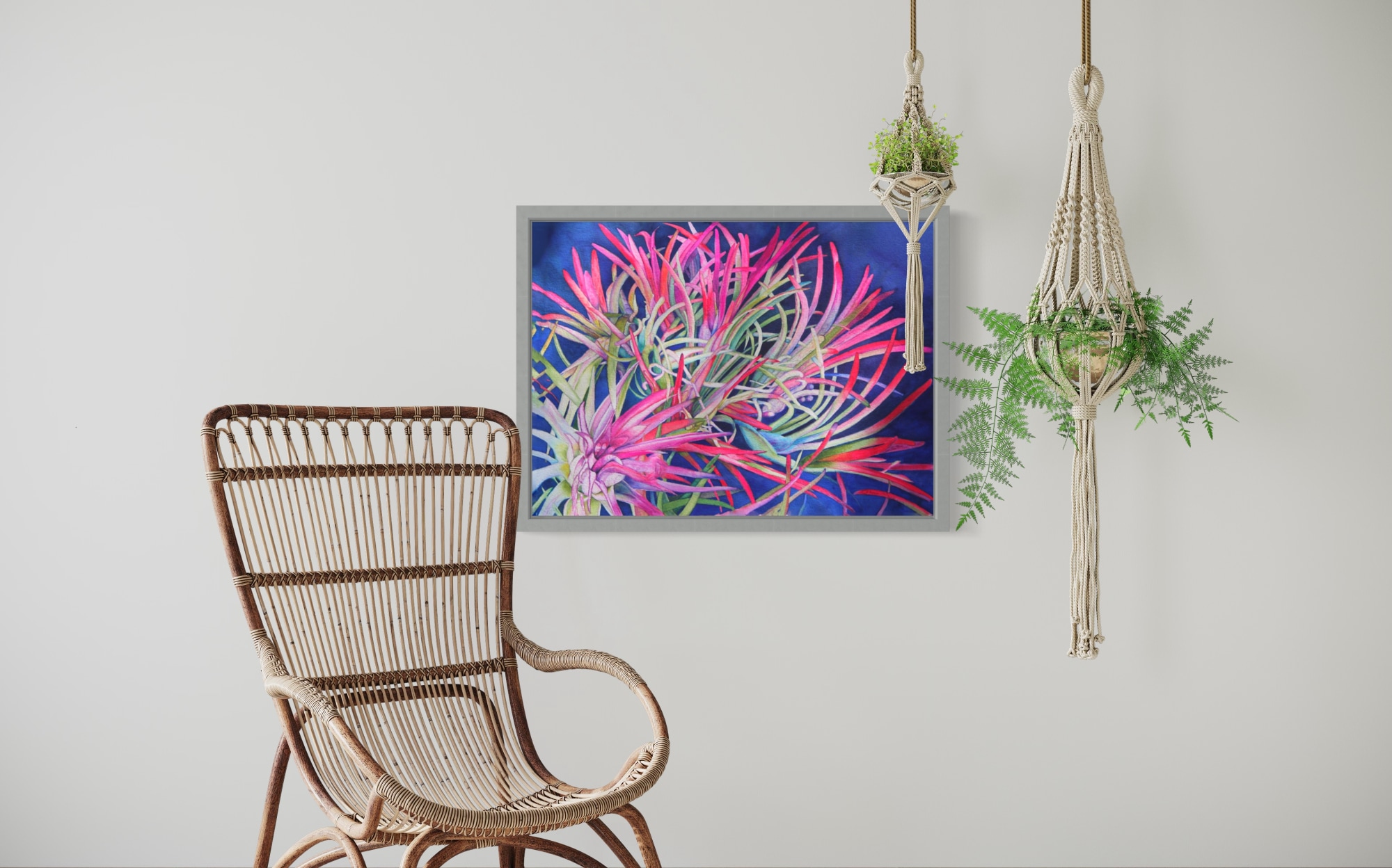 "Bromeliads Gone Wild" pushes the boundaries of color and captures the untamed beauty and vibrant colors of these exotic tropical plants. With its intricate detailing and play on light and shadows, this piece truly encapsulates the essence of nature's wild elegance.