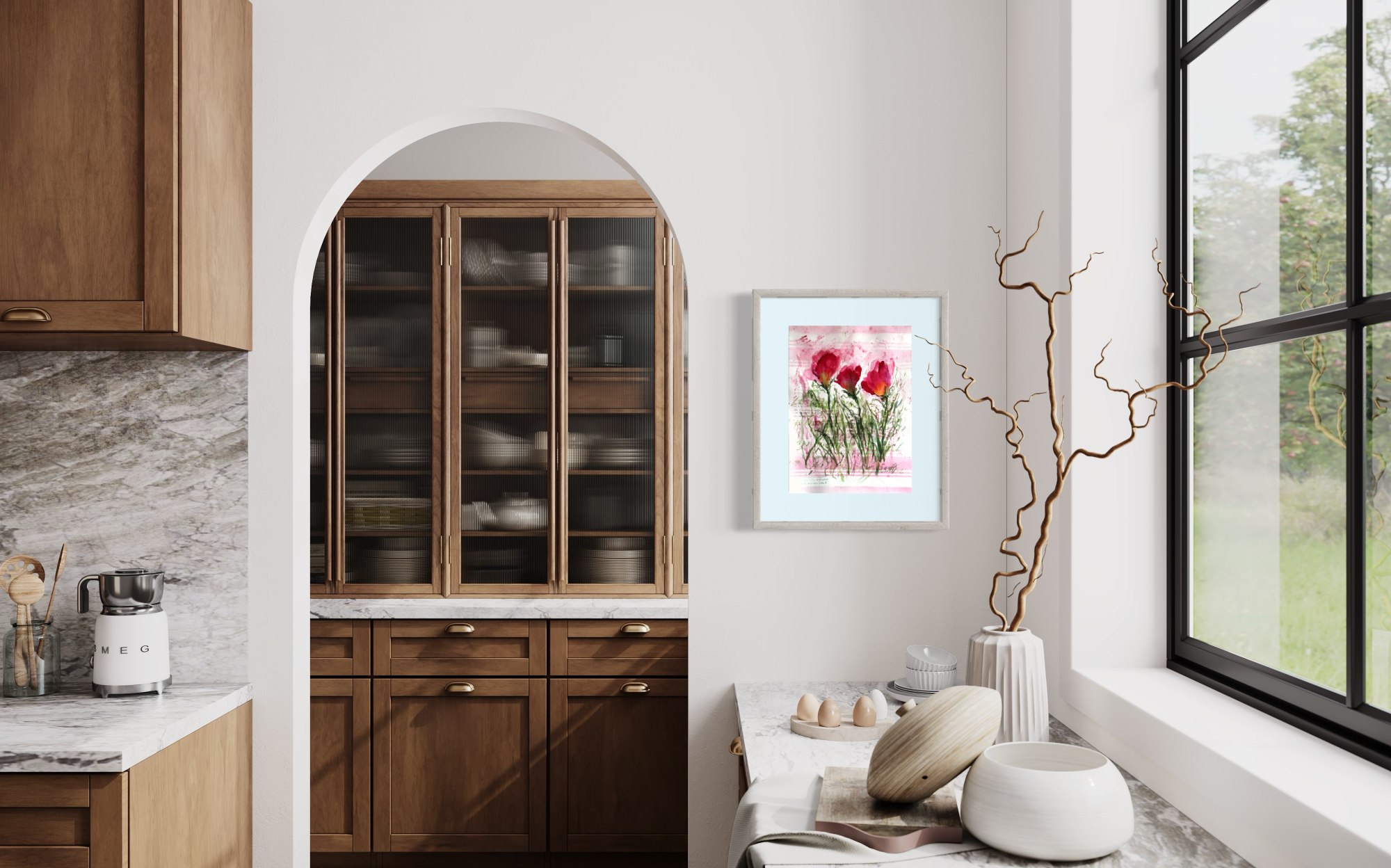 "Come on in it's a party, a petunia party!" is a vibrant and lively watercolor painting that exudes joy and celebration. With a size of 11x14", this artwork would make a stunning addition to any kitchen space, infusing it with a sense of fun and beauty. The artist's dish towel pattern and vivid color choices bring the petunias to life, creating an atmosphere of festivity and cheerfulness. This painting invites viewers to imagine themselves joining the colorful petunias in their delightful party, evoking a sense of warmth and happiness that would enhance any kitchen décor.