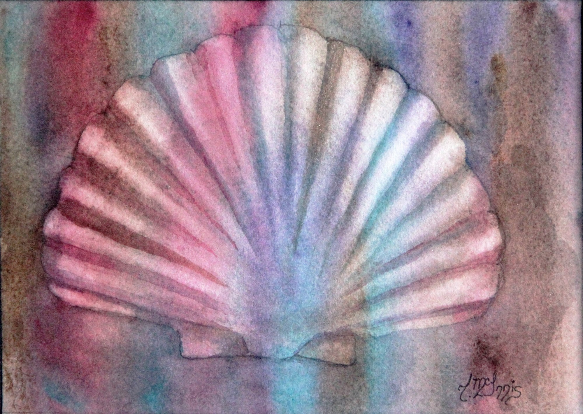 Happy scallop shell on pastel sand. Piece is embellished with iridescent paint. Perfect pairing for Sea Biscuit.