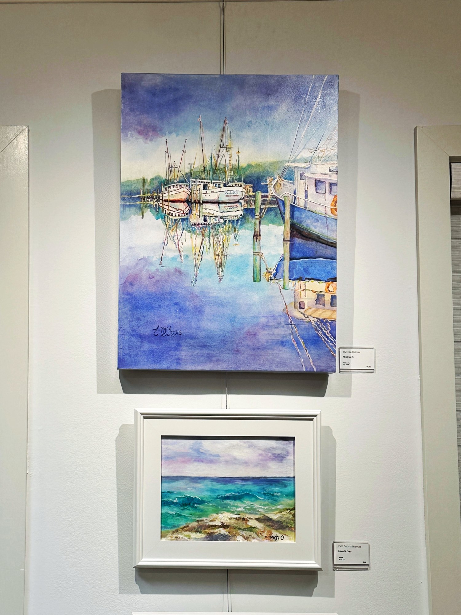 Watercolor on wooden cradle ready to hang. I loved the restful late afternoon reflections on the busy cove. Doesn't it speak to you of the end to a successful job and promise of satisfied self reflection!