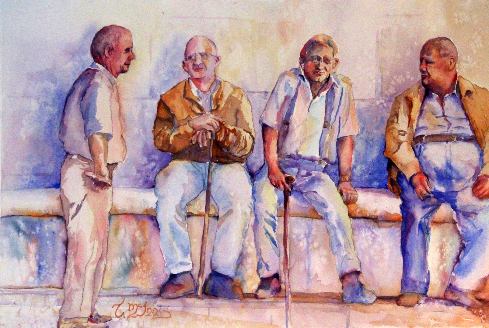 Reference photo credits to Susan McLeay. Susan focused in on the group across the square, in Pitigliano just as she was spied by the main subject.