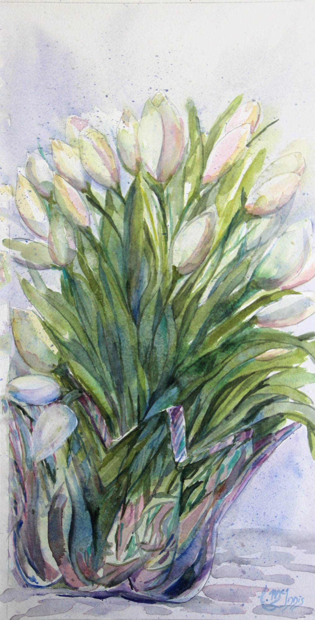 These soft colors flow so easily to give a very peaceful composition of tulips in a heavy glass bowl.