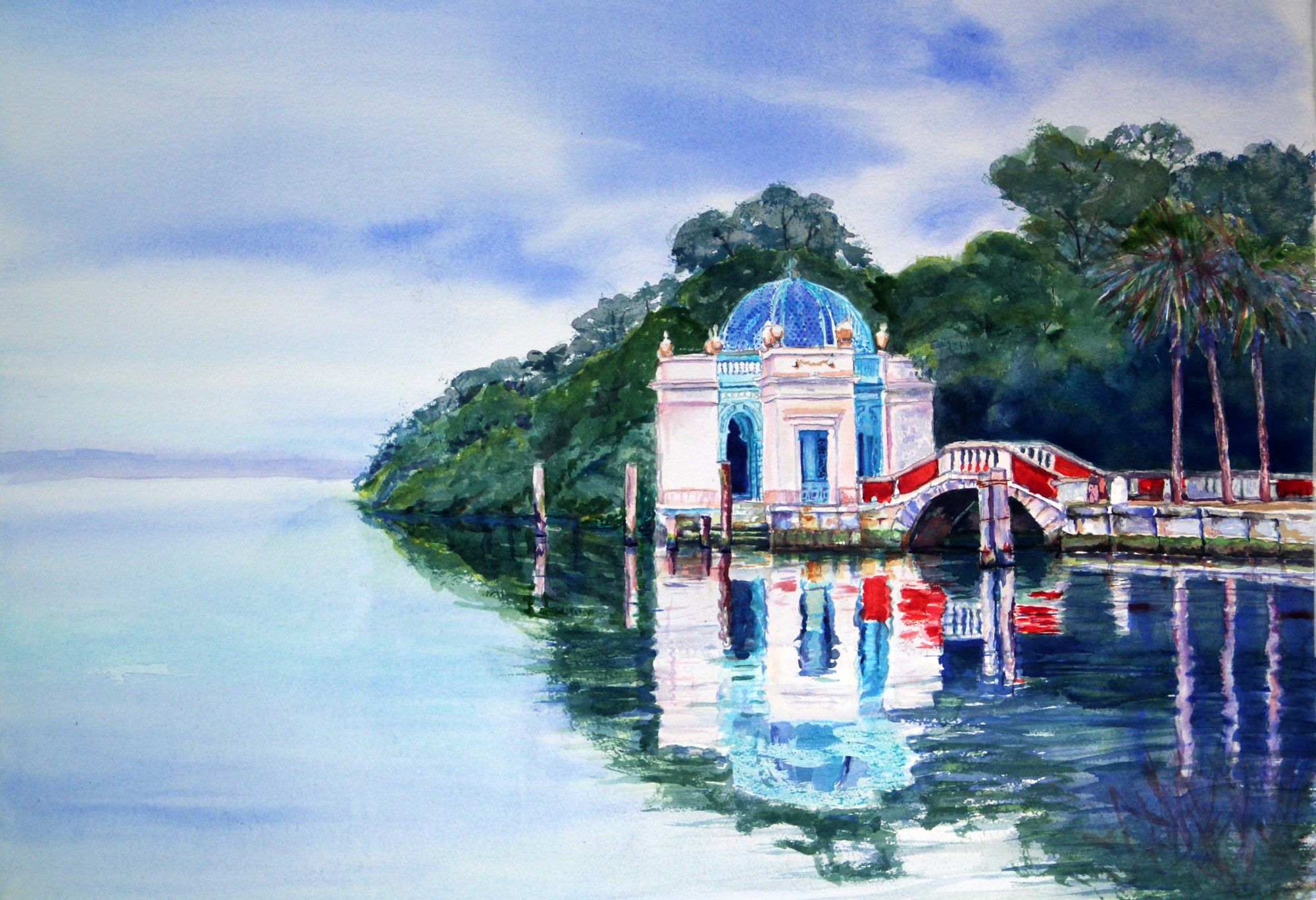 These Baroque Miami gardens and Villa estate are very impressive, reminiscent of the Italian Renaissance. This gazebo on the docks made me dream of arrival at a grand "Gatsby Styled "ball in the early 20th Century. The emerald colored Biscayne Bay waters seemed to meld into the sky. James Deering must have been a Dear!