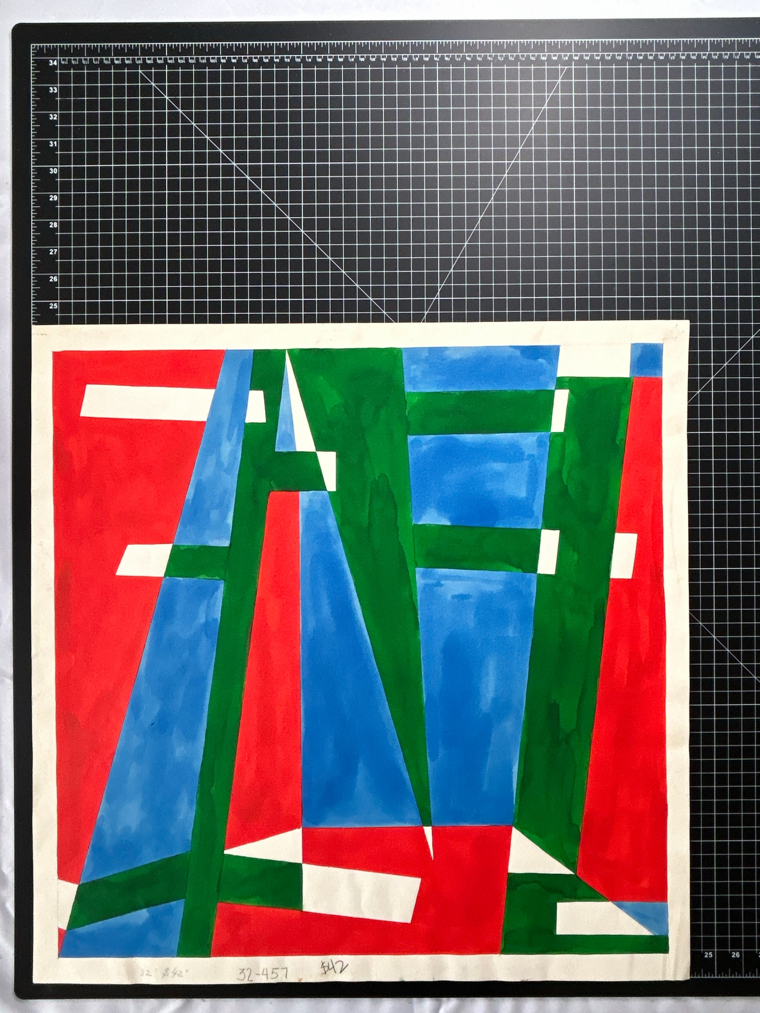 The majority of Vera's original artwork is unsigned and undated. This absence of her signature is largely due to her original artwork being used in textile and houseware designs, where her trademarked signature was later added. Typically, her original artwork was named after being incorporated into a master strike off. In some instances, the date of the piece was added to the back; however, this date may signify when the artwork was trademarked or presented to a customer. Some of her original pieces include notes on the back, offering a glimpse into the inner workings of The Vera Company.