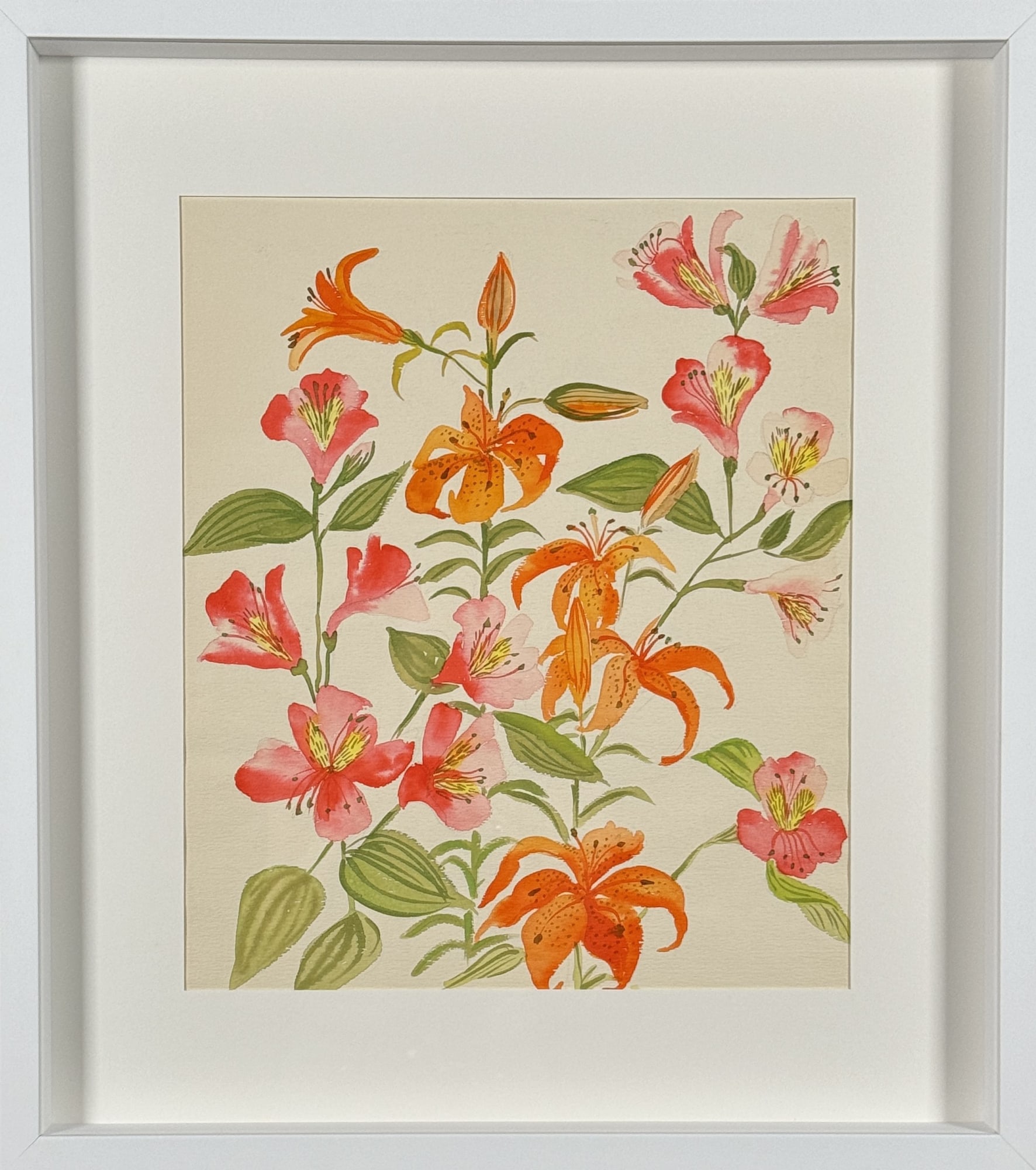 Bask in the perennial charm of a bouquet that never fades with this depiction of flourishing flora. Tender petals in shades of coral and sunrise orange unfold in a delicate dance, while verdant leaves stretch gracefully towards an unseen sun. The artful arrangement of these botanicals creates an everlasting spring, inviting the beholder to a serene meadow with every glance. A timeless piece to bring the tranquility and beauty of a garden into the home.