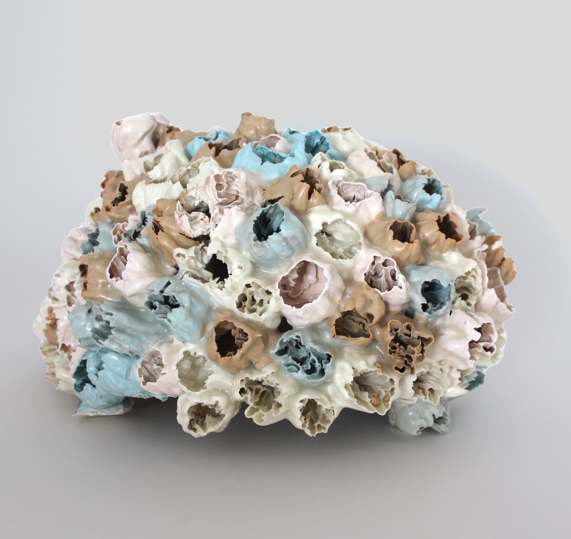 - paper porcelain, stain, glaze, a vestige of the artist's own garments and medical documents