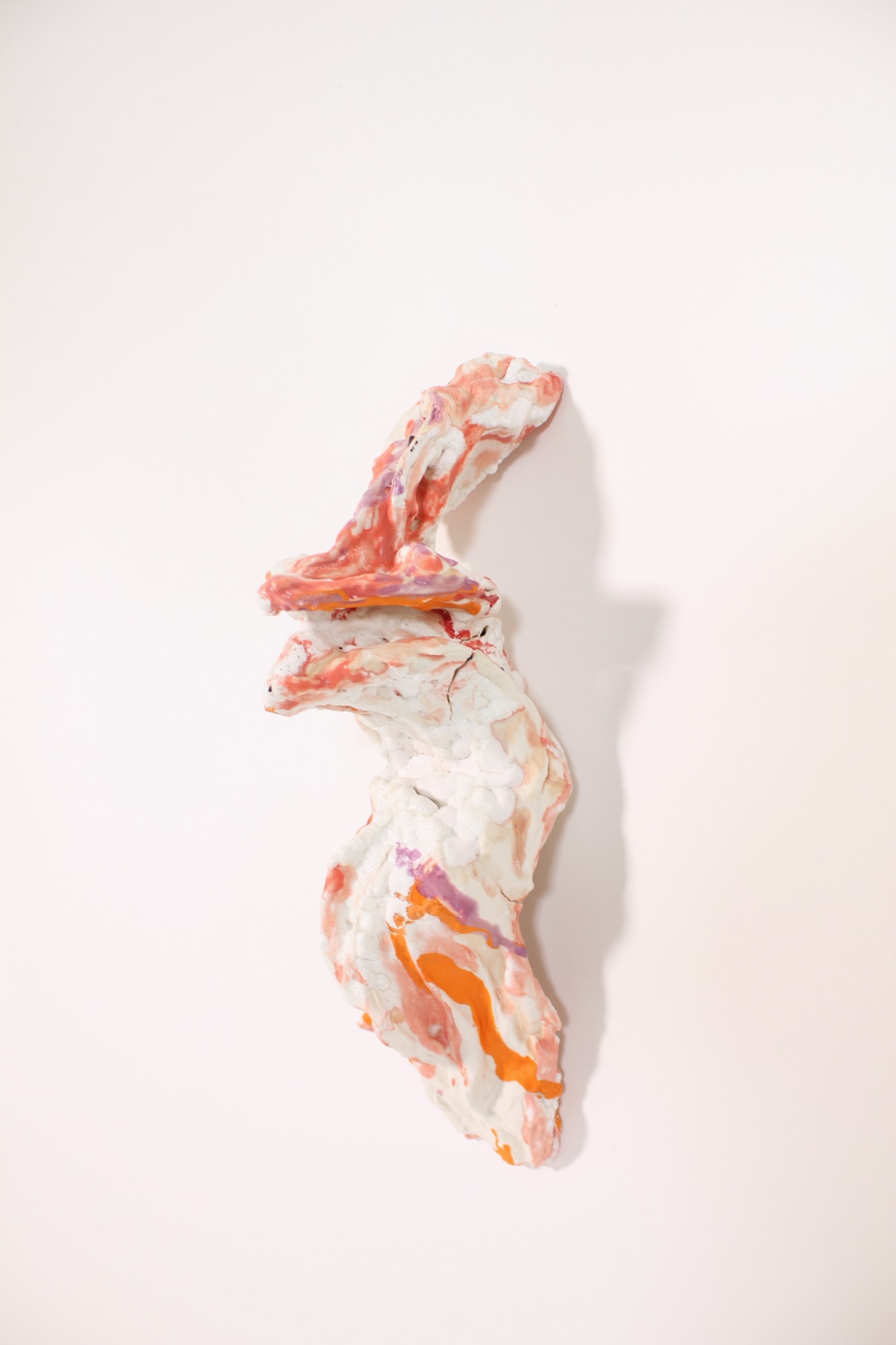 - porcelain, glaze, underglaze, the vestige of four bras, steel hardware