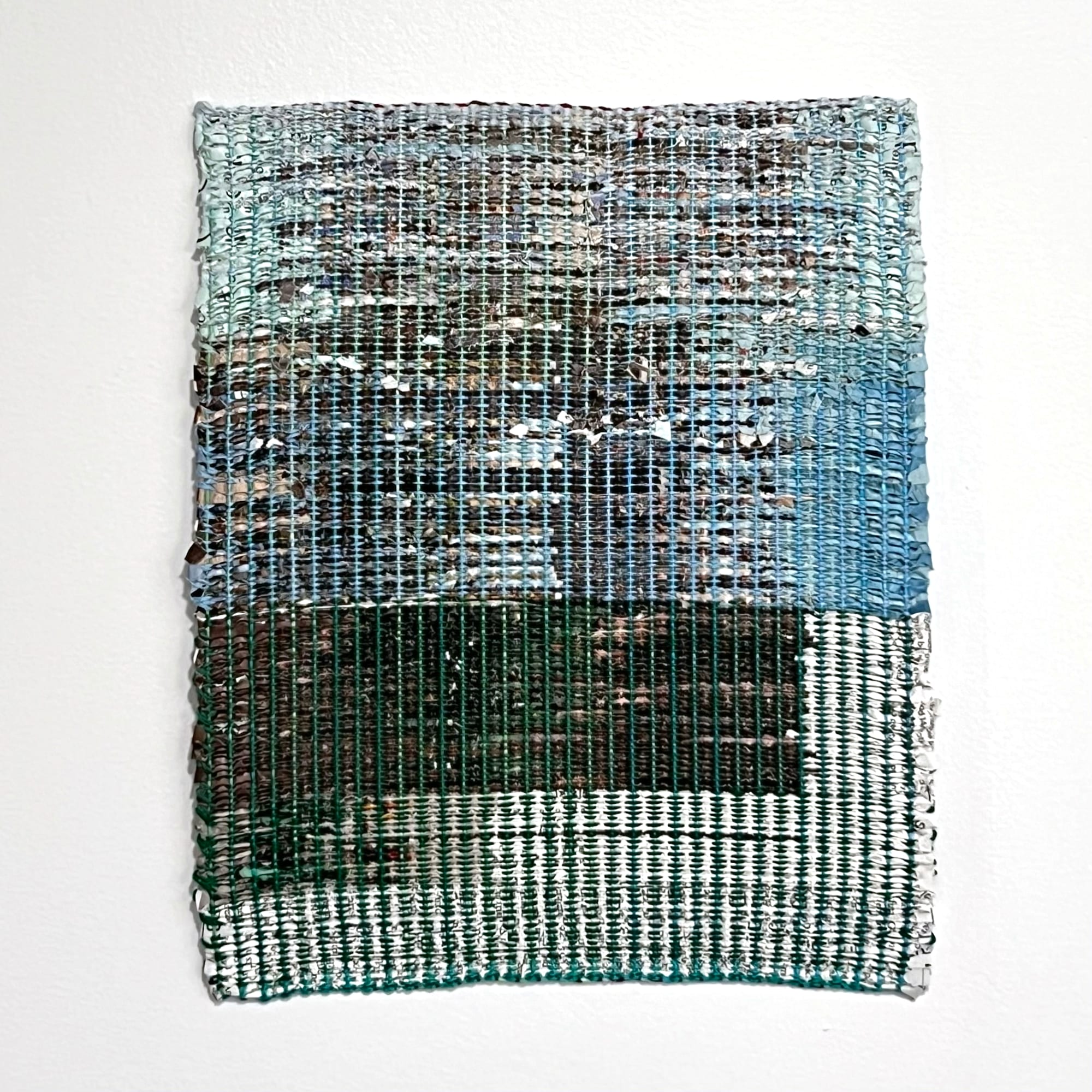 - Shredded, woven New York Times Magazine from Nov. 13, 2022: “We live in an age of destruction, which means we live in an age of rebuilding,” embroidery thread, fragments of text saved from the cover article