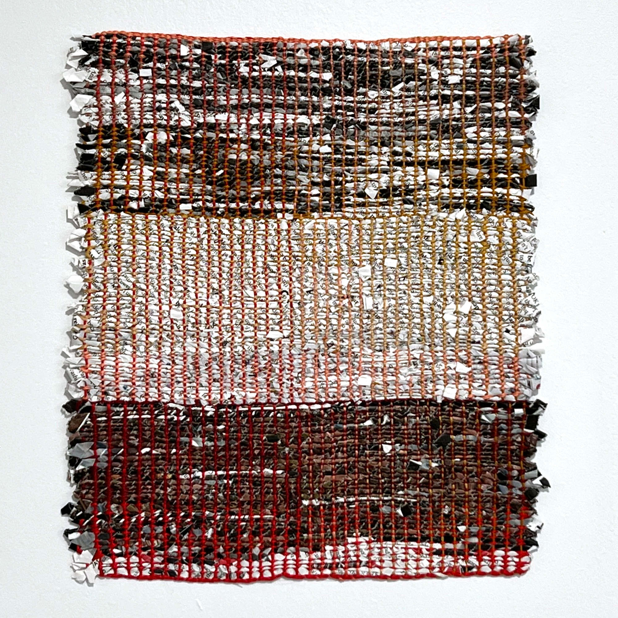 - Shredded, spun, woven New York Times Magazine from October 29, 2023: ““Slipping Away: The scientists who are watching their life’s work disappear," embroidery thread, fragments of text saved from the cover article