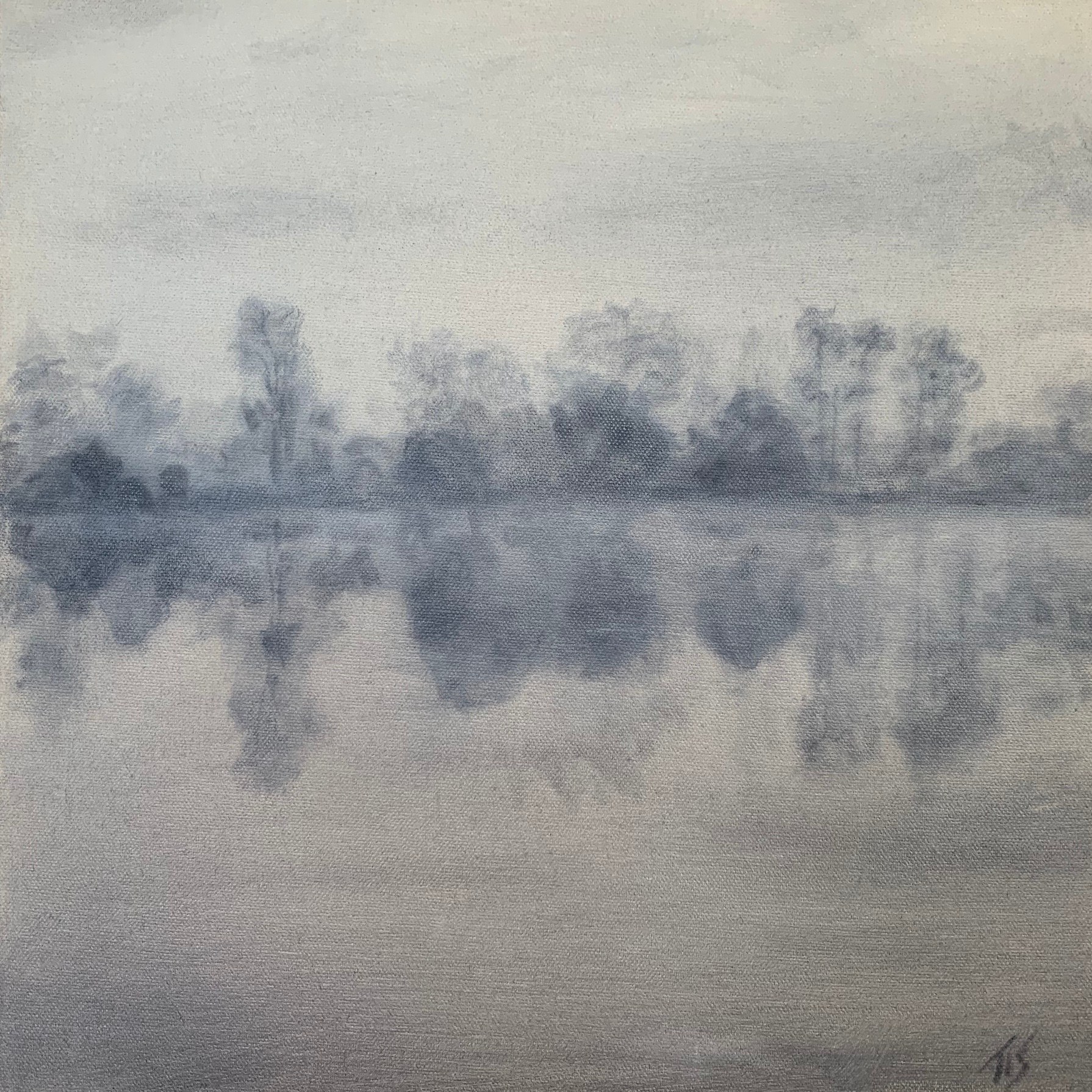 MessageA monochrome study, a misty dawn on Lake Orange near Hillsborough, NC. Reference image courtesy of Lisa Francescon.
