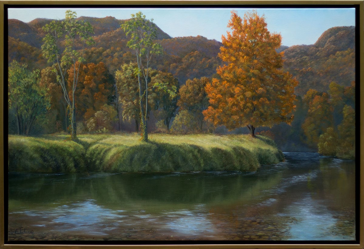 This spot along the Lamoille River in Johnson is my new favorite spot. This is the second painting, this time early autumn. I changed the background bringing distant hills close in to the river for more interest. The strong light coming in from the left is what makes early morning special in this particular place.
