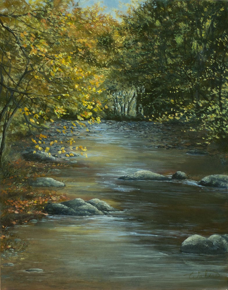 - Subject Matter: Landscape, woods, stream, autumn, vermont