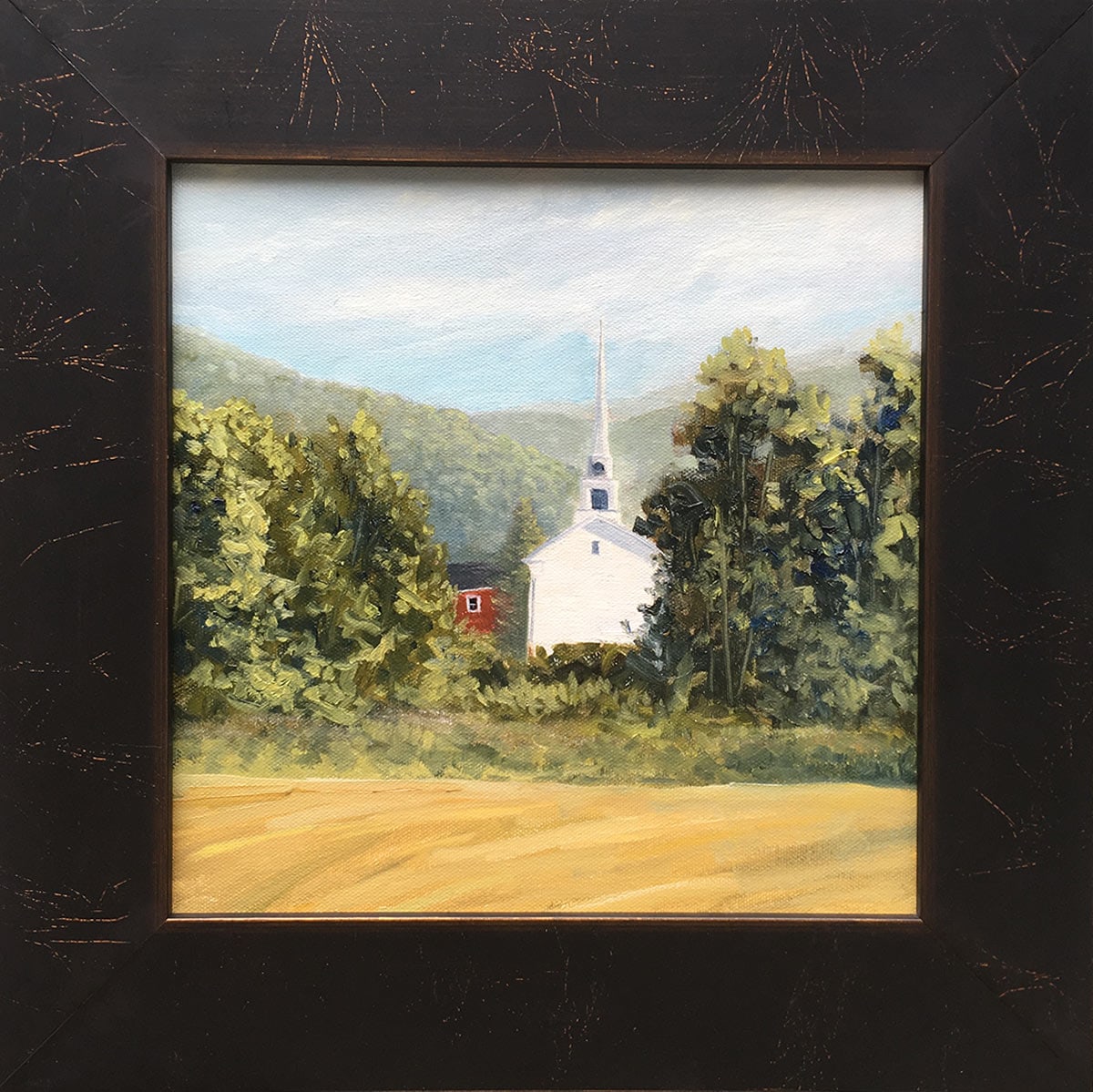 A group of artists paints in and around Stowe Vermont for the month of June every year. It started long ago when some of them were students of Frank Mason. After Frank's death they continued the tradition to this day with artists coming from as far away as Florida and Ohio. The group now includes some locals, such as myself, who paint with them from time to time. On this night it was a perfect night to paint the iconic Stowe Community Church (one of the oldest non-denominational churches in the country) from the back. Warm breeze, nice light, and iconic imagery. Add some artist friends and you get a nice evening with a nice little painting as a reward.